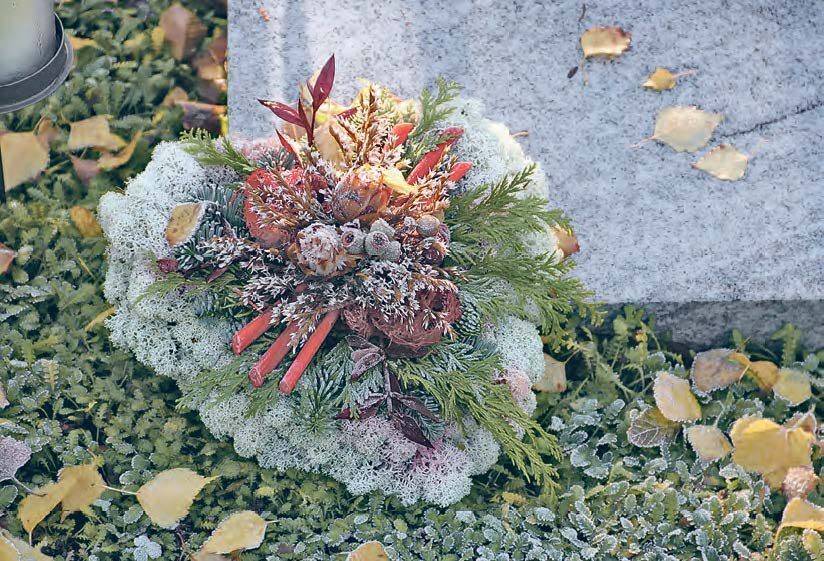 Friedhofsgärtner verwandeln im Herbst so manches Grab in ein kleines Kunstwerk. Mit individuell und aufwendig gestaltetem Grabschmuck setzen sie dabei Akzente. „Als Grundlage für Kränze und Gestecke verwenden wir oft Tannenzweige, Wacholder, Moos und andere Exoten. Diese bleiben auch bei Wind und Wetter lange attraktiv“, erklärt der stellvertretende Vorsitzende des Bunds deutscher Friedhofsgärtner, Ralf Kretschmer.