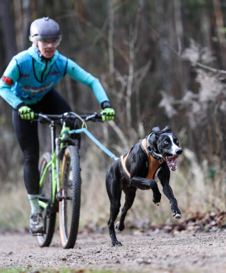 Pia Schmalszbauer mit Hund Jet Rasse europäischer Hound beim Bikjöring im Einsatz©Daniel Decombe.0Y6A1011