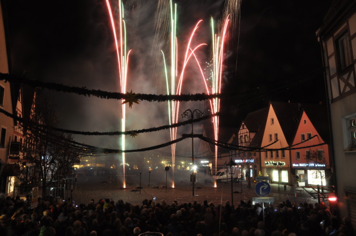 Über 1000 Menschen bewunderten das Feuerwerk am dritten Adventssonntag am Laufer Marktplatz. Fotos: Kirchmayer, Fischer