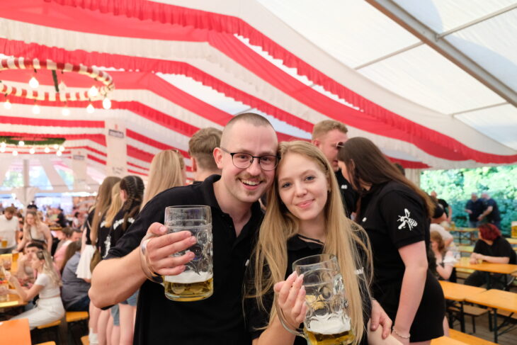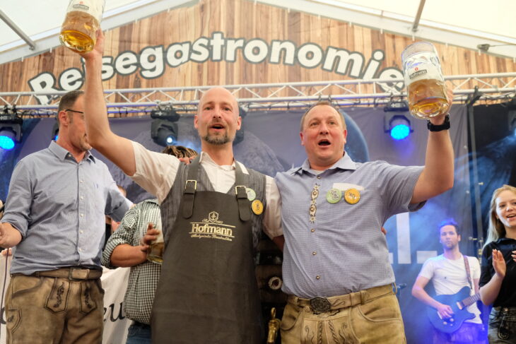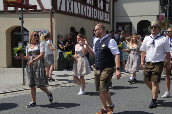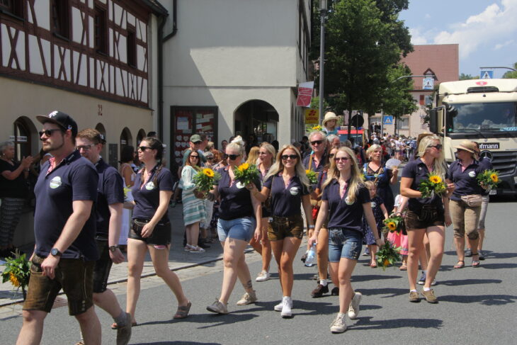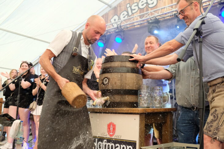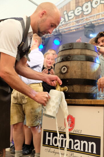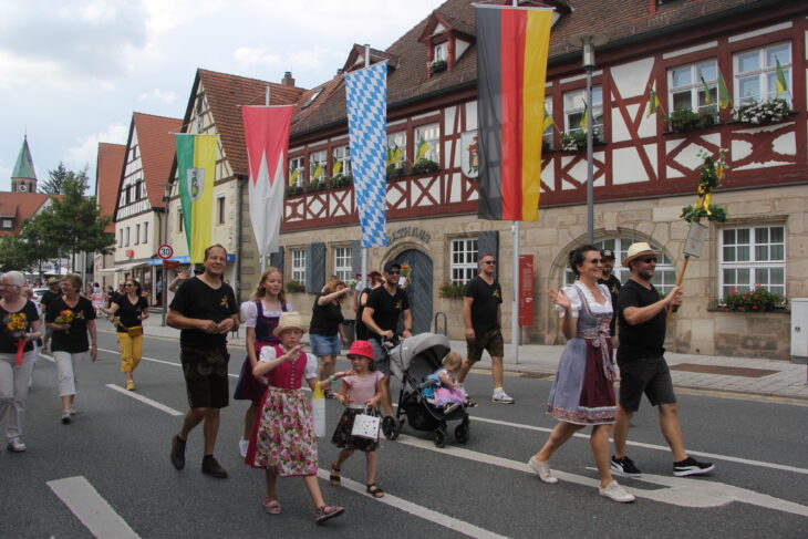 Die Ehre des Bieranstichs gehört in diesem Jahr einem Ehrengast, die Spiele der Kärwaleute fordern die Bürgermeister und beim großen Festumzug strahlen die Sonne bei fast dreißig Grad, die Mitglieder der rund dreißig teilnehmenden Gruppen und Vereine und das begeisterte Publikum um die Wette: Die Feuchter Kärwa lockt an sechs ereignisreichen Tagen Tausende Besucher nach Feucht. (Fotos: Johannes Gurguta/Julia Hornung)