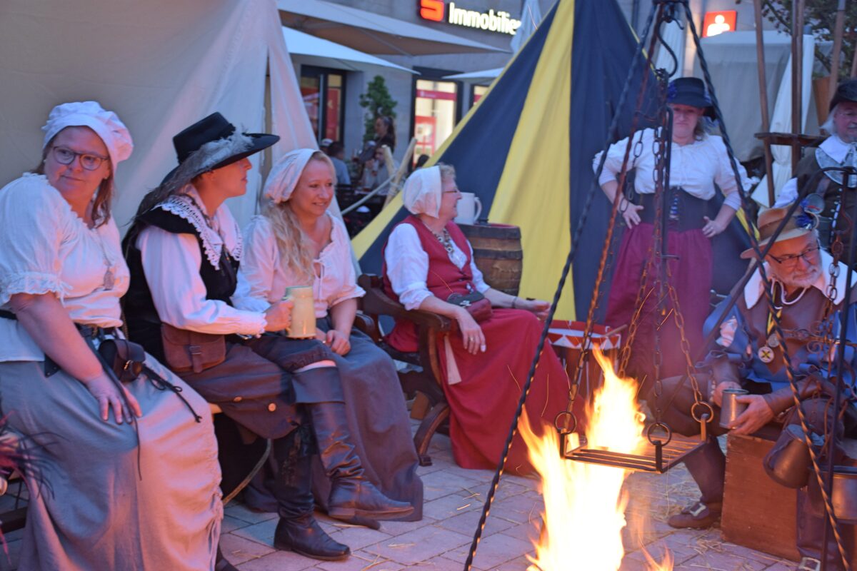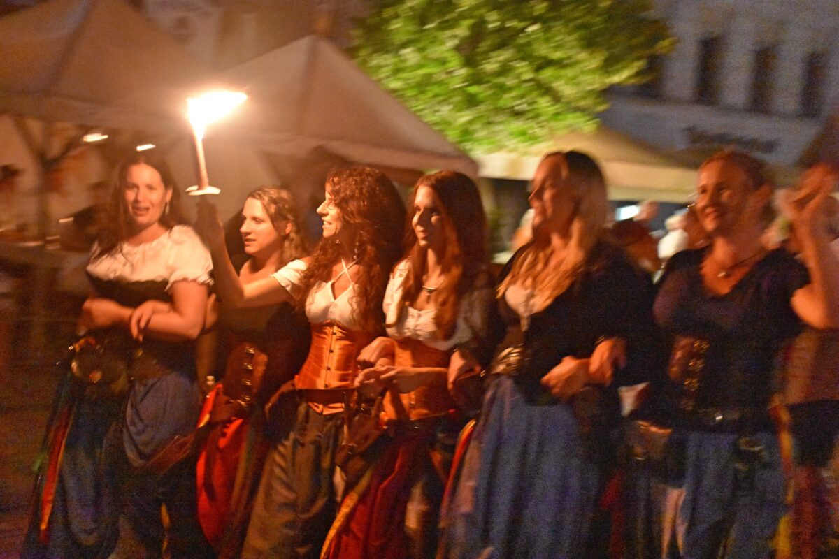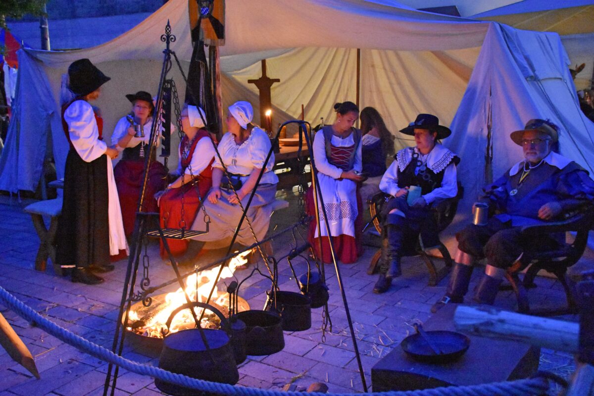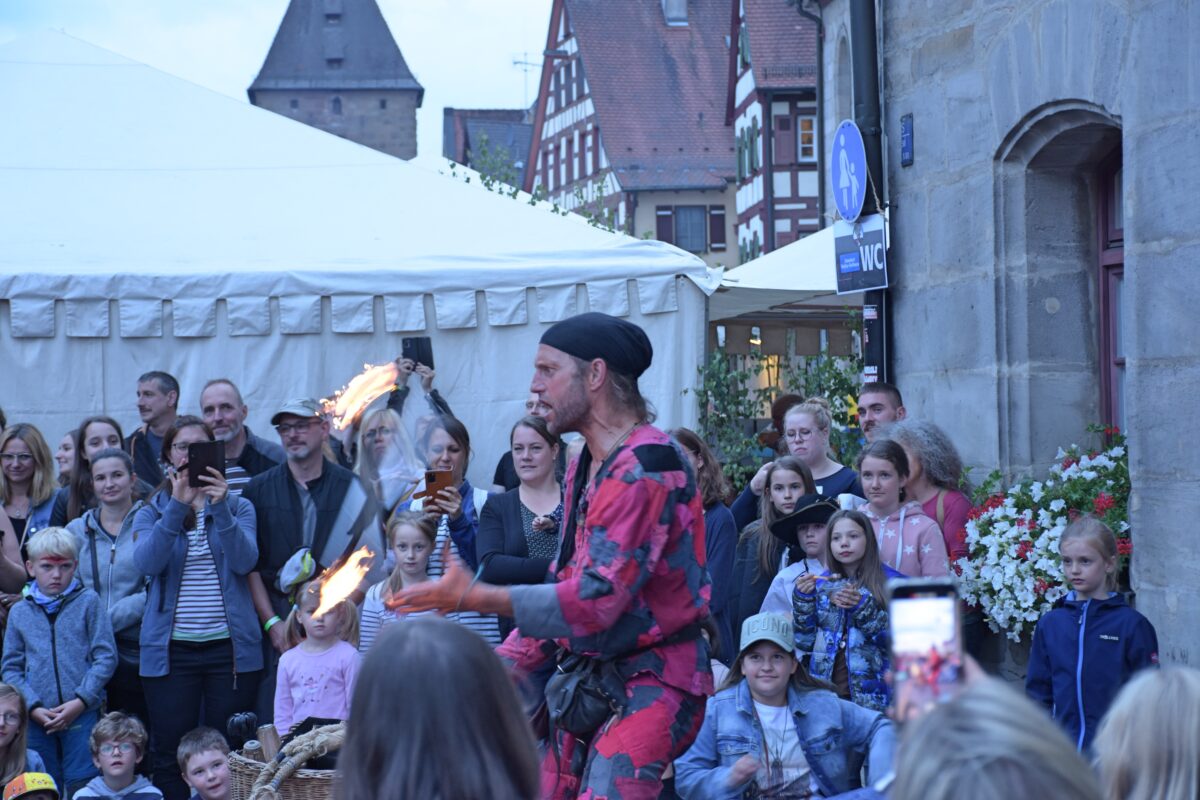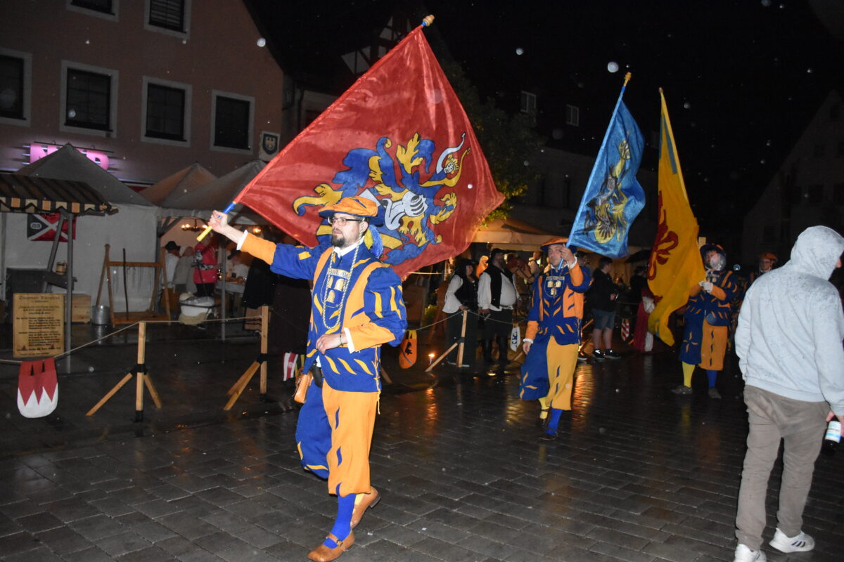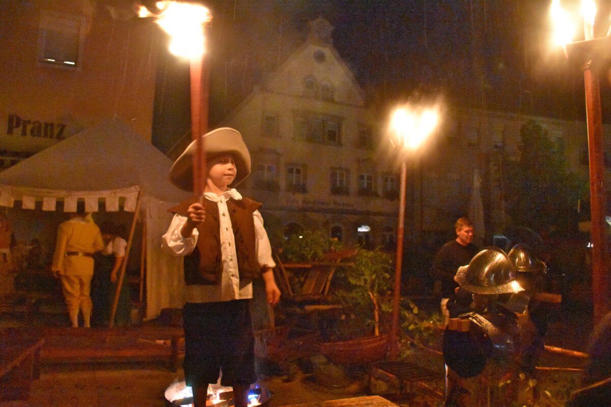 Die lange Nacht am dritten Samstag der Wallenstein-Festspiele zog ab Nachmittag zahlreiche Besucher mit Kindern und abends die Nachteulen an. Schon lange bevor es dunkel wurde, strömten die Menschen beim historischen Lagerleben durch die Altdorfer Innenstadt. Zusätzlich zum Gaukler-Treiben, das an diesem Tag bis drei Uhr in der Nacht ging, baute auch der Altdorfer Handwerker- und Gesellenverein seine Hütten auf dem Schlossplatz auf. Als dann die Sonne hinter dem Horizont versank, verliehen die Auftritte der Feuerkünstler, Gaukler, Barden und Akrobaten dem Abend eine magische Stimmung. Dazu waren die Zelte der einzelnen Lager mit Fackeln und Feuern erleuchtet und die Straßenlaternen ausgeschaltet.