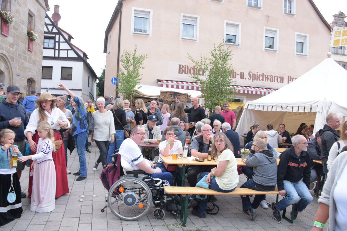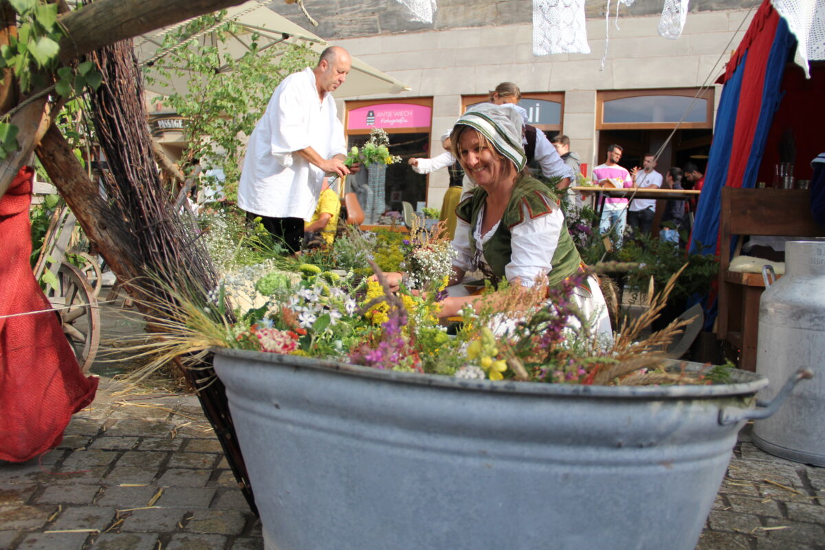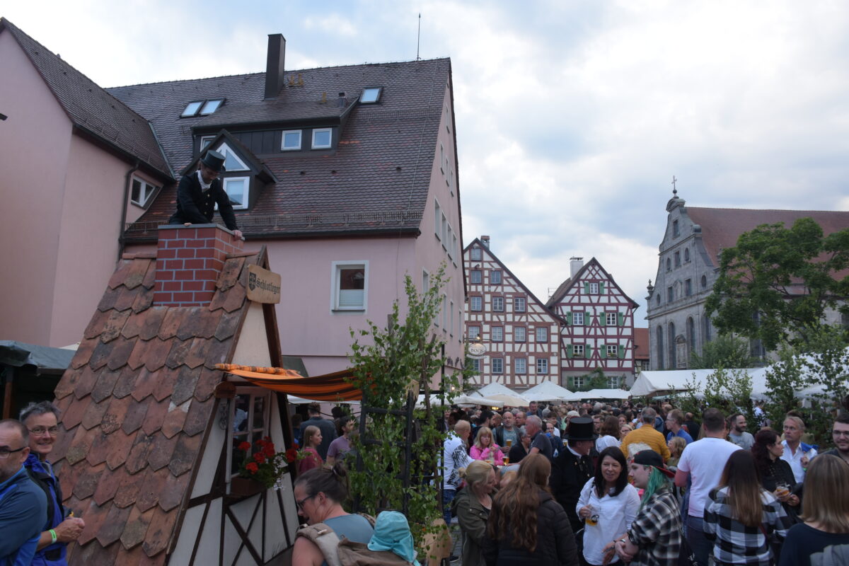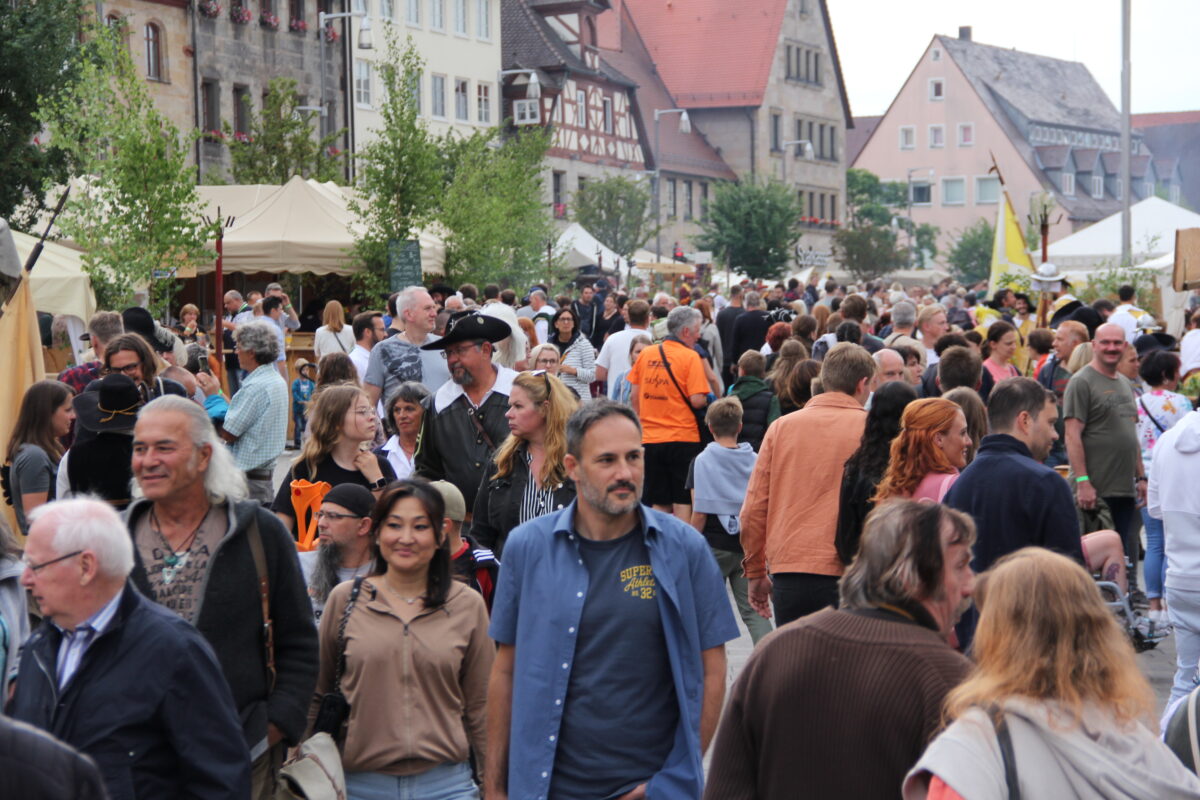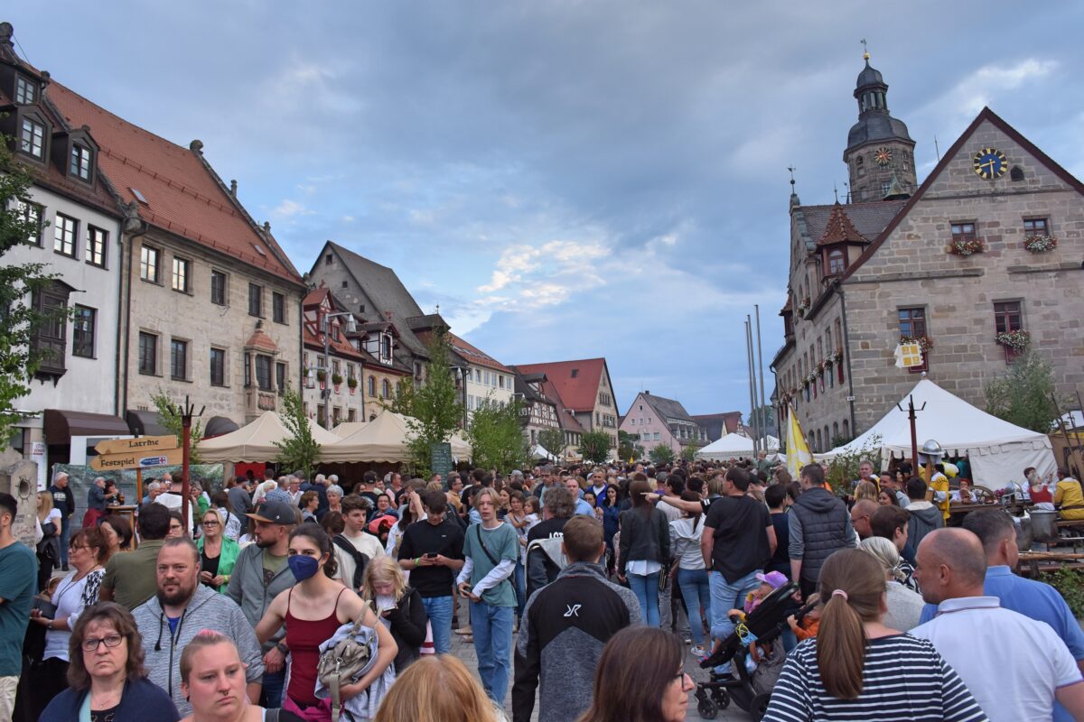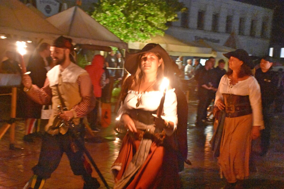 Die lange Nacht am dritten Samstag der Wallenstein-Festspiele zog ab Nachmittag zahlreiche Besucher mit Kindern und abends die Nachteulen an. Schon lange bevor es dunkel wurde, strömten die Menschen beim historischen Lagerleben durch die Altdorfer Innenstadt. Zusätzlich zum Gaukler-Treiben, das an diesem Tag bis drei Uhr in der Nacht ging, baute auch der Altdorfer Handwerker- und Gesellenverein seine Hütten auf dem Schlossplatz auf. Als dann die Sonne hinter dem Horizont versank, verliehen die Auftritte der Feuerkünstler, Gaukler, Barden und Akrobaten dem Abend eine magische Stimmung. Dazu waren die Zelte der einzelnen Lager mit Fackeln und Feuern erleuchtet und die Straßenlaternen ausgeschaltet.