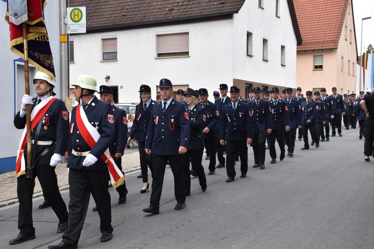 GERMERSBERG — Zum 125. Feuerwehrjubiläum in Germersberg zogen 55 Marschgruppen durch den Schnaittacher Ortsteil. Fotos: Sichelstiel
