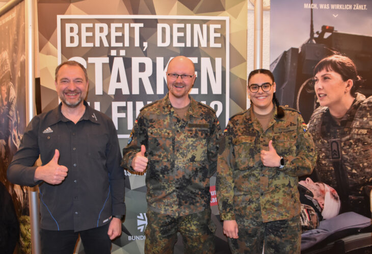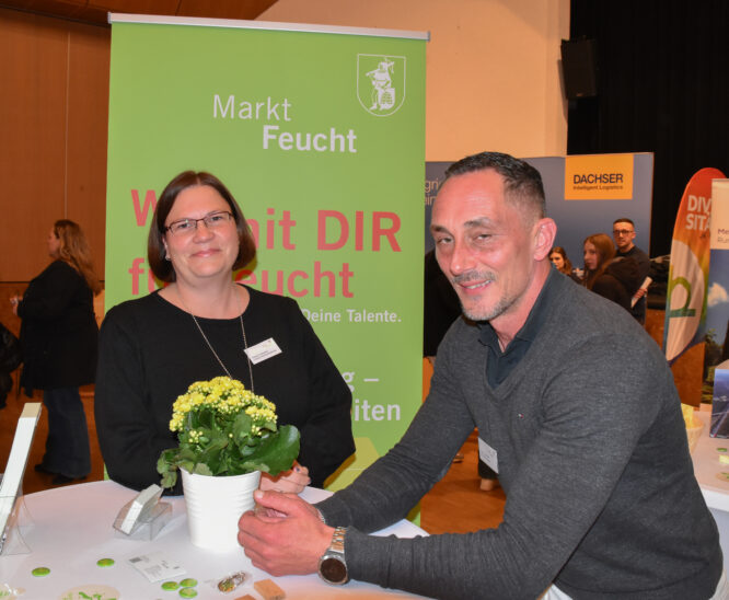 Initiatoren des diesjährigen „Future Day“ sind der Feuchter Unternehmer Olaf Krebs von der J-O Unternehmensgruppe und die Raiffeisenbank im Nürnberger Land. Das Ziel der Ausbildungsmesse ist ein Überblick über Ausbildungsmöglichkeiten und aktuelle Stellenangebote in der Region zu schaffen. Dazu war eine große Vielfalt an Firmen und Institutionen mit Informationsständen vertreten: Neben Intercoiffure Olaf Krebs und der Raiffeisenbank waren das Fotostudio Hesse, TopFit Fitness- und Gesundheitszentrum, Fareva-Excella, ETA, Smurfit Kappa, Polyplast-Sander, Winning Plastics, Wittwer, Dachser, Atotech, Klebl Handel-Obi Neumarkt, Suspa, TGM Kanis Turbinen, Heinrich Müller Präzisionsdrehteile, der AWO-Kreisverband, die Rummelsberger Diakonie, ASB Wunderkinder, die Bayerische Landespolizei, die Bundeswehr, der Markt Feucht sowie der Verlag Der Bote vor Ort. Für Petra Fleischmann-Hirse von der Raiffeisenbank ist der Future Day ein „wirklich tolles Format, um die Jugendlichen auf der Suche nach einem Ausbildungsplatz und die hier ansässigen Firmen zusammenzubringen.“ Olaf Krebs freute sich über die sehr große Resonanz und die gut gefüllte Reichswaldhalle: „Wichtige Firmen und Institutionen aus der Region waren vertreten und etliche haben sich bereits heute wieder für das nächste Jahr angemeldet. So können wir jungen Menschen bei der Suche nach einem Ausbildungsplatz gezielt helfen und die Wirtschaft in der Region stärken.“ (Fotos: Herbert Bauer)