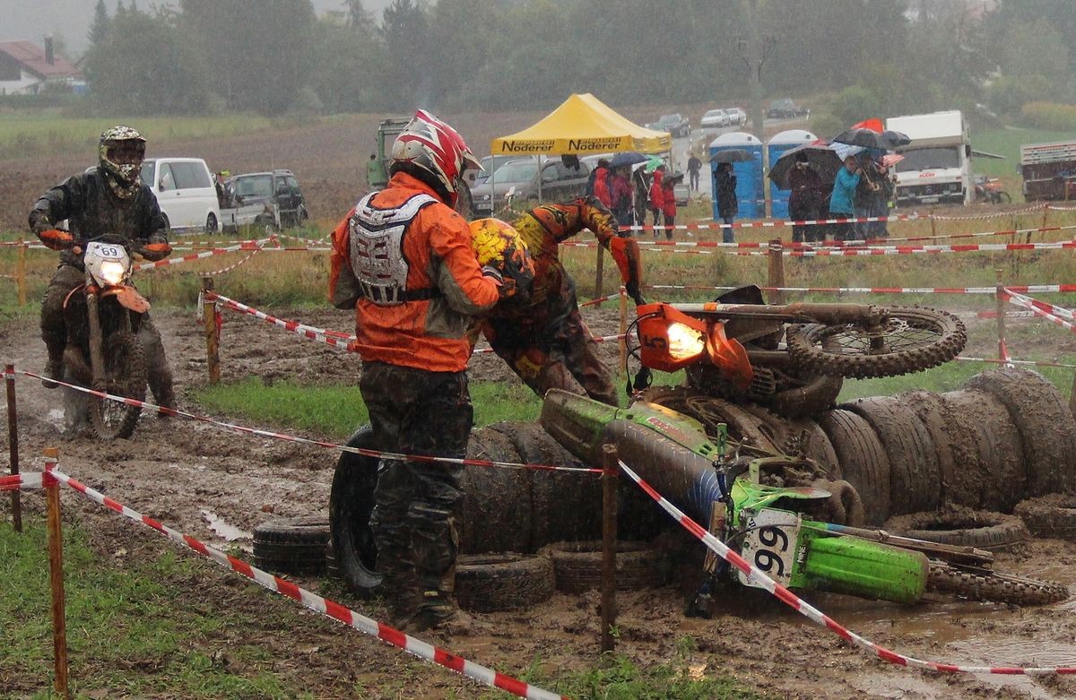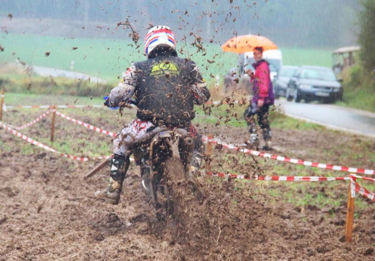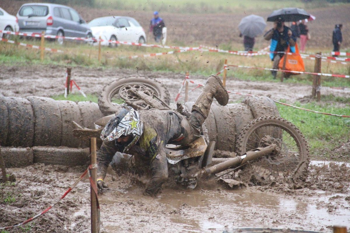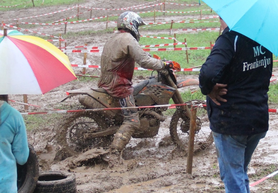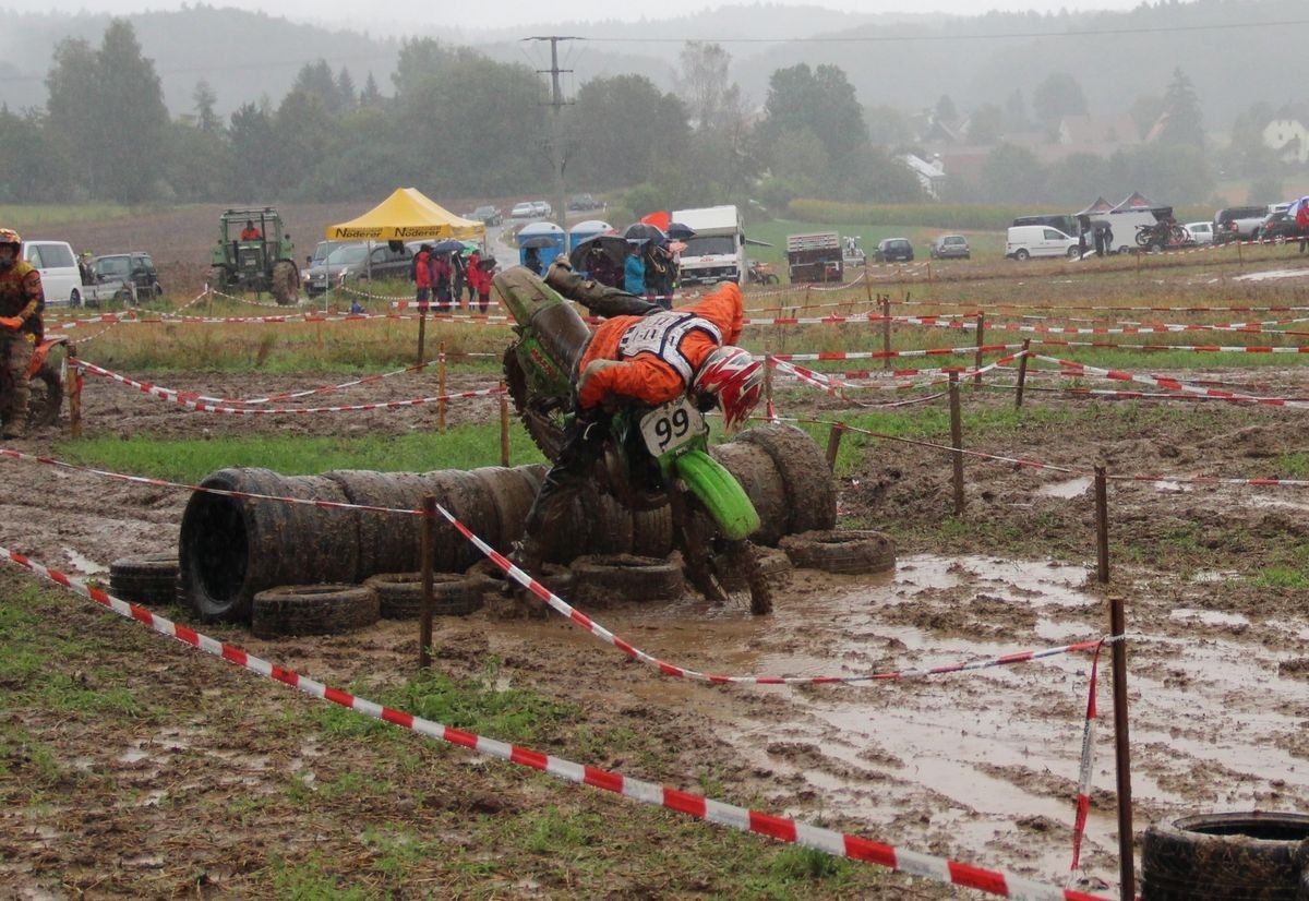 Ein Enduro-Rennen als regelrechte Schlammschlacht: Beim zehnten Juraduro bei Hormersdorf mussten die Teilnehmer am Wochenende Regen und Matsch trotzen. Fotos: Schuster