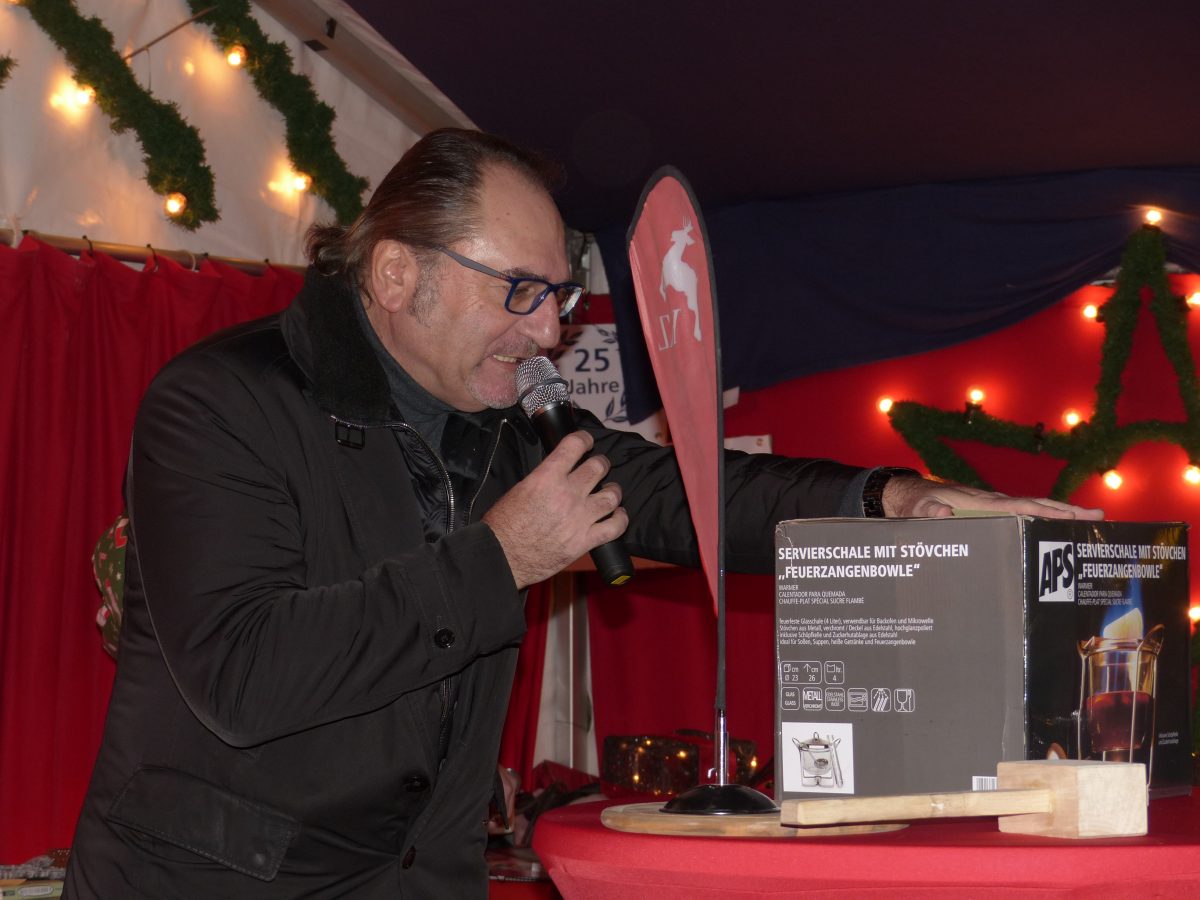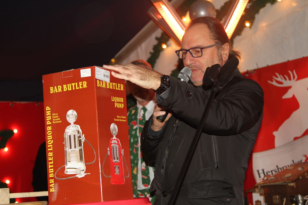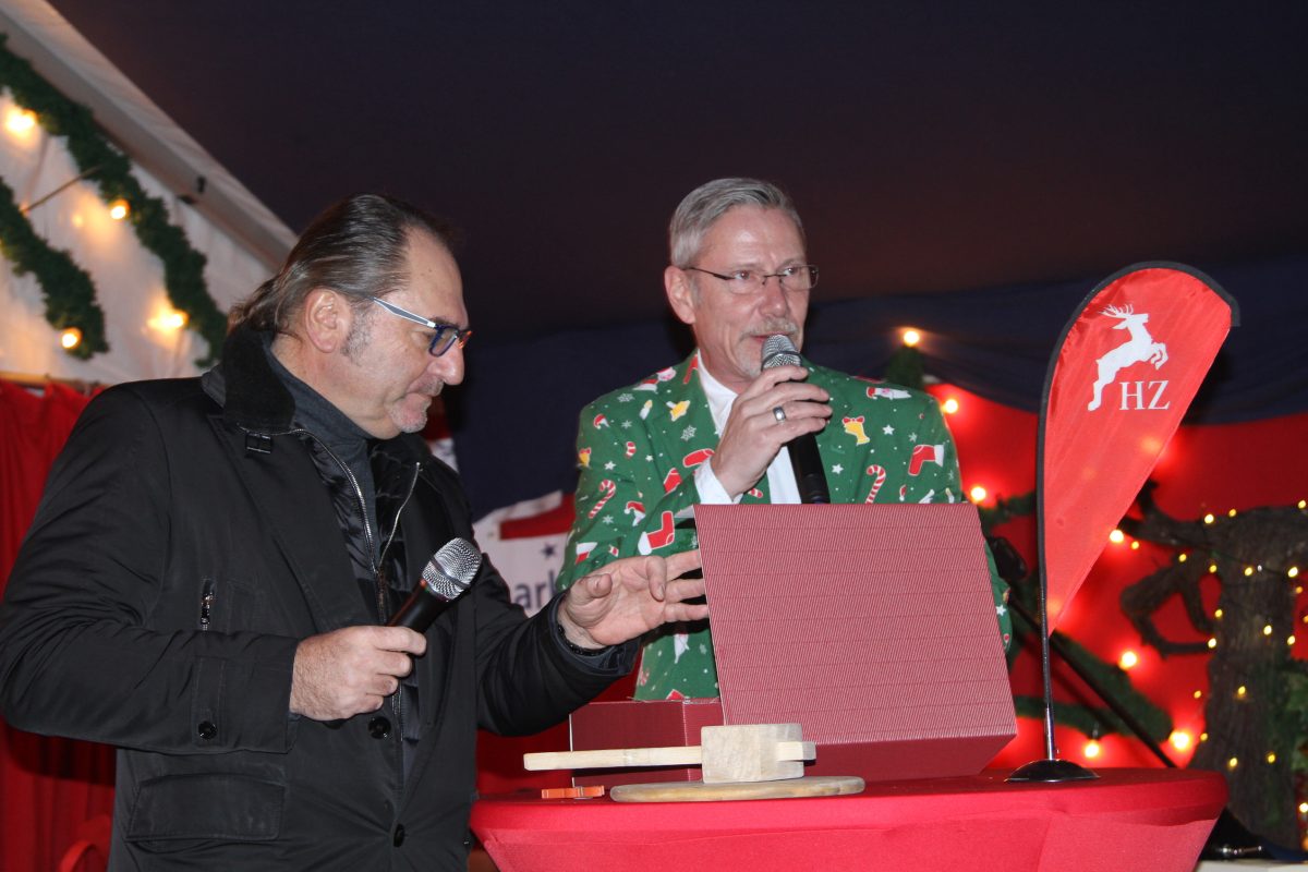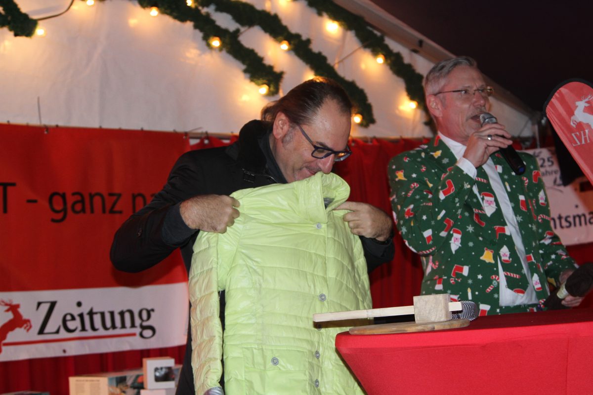 Hersbruck – „Zum ersten, zum zweiten — und zum dritten!“ hieß es nach den Feiertagen auf der Bühne des Weihnachtsmarktes in Kratzers Biergarten. Auf Einladung der Hersbrucker Zeitung konnten „unvorteilhaft Beschenkte“ dort beim „Markt der langen Gsichter“ ihre Gaben schnell wieder loswerden. Auch bei der 6. Auflage war Moderator Götz Reichel mit von der Partie. Für seinen Anzug, einer grünen Geschmacksverirrung mit adventlichen Motiven, erhielt der Stadtrat anerkennende Pfiffe von den Besuchern, die scharenweise zu dem Event pilgerten. Ihm zur Seite stand diesmal ein Präsident: Denn in der Funktion leitet Bernd Händel die berühmte Veitshöchheimer Faschingssitzung. In Hersbruck vertauschte er die Narrenkappe mit einem Auktionshammer. Und hier geht es zum Film.