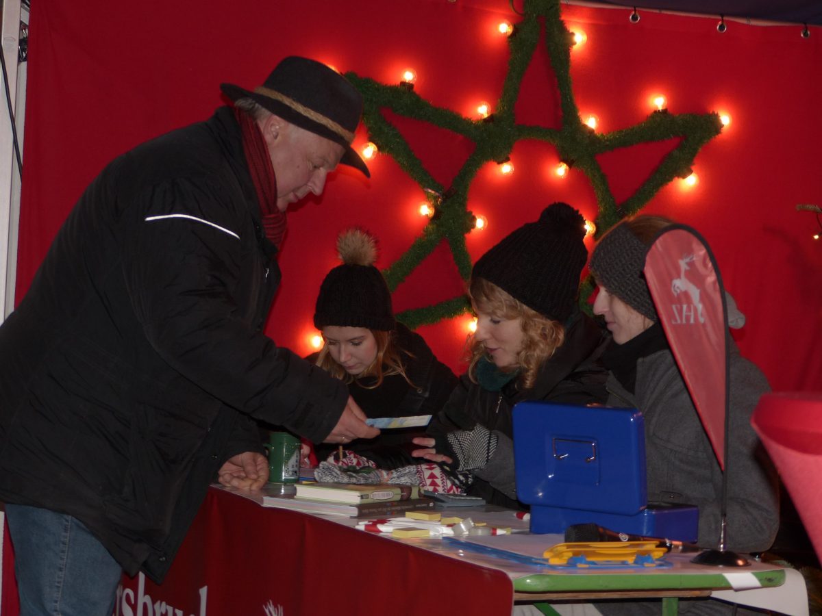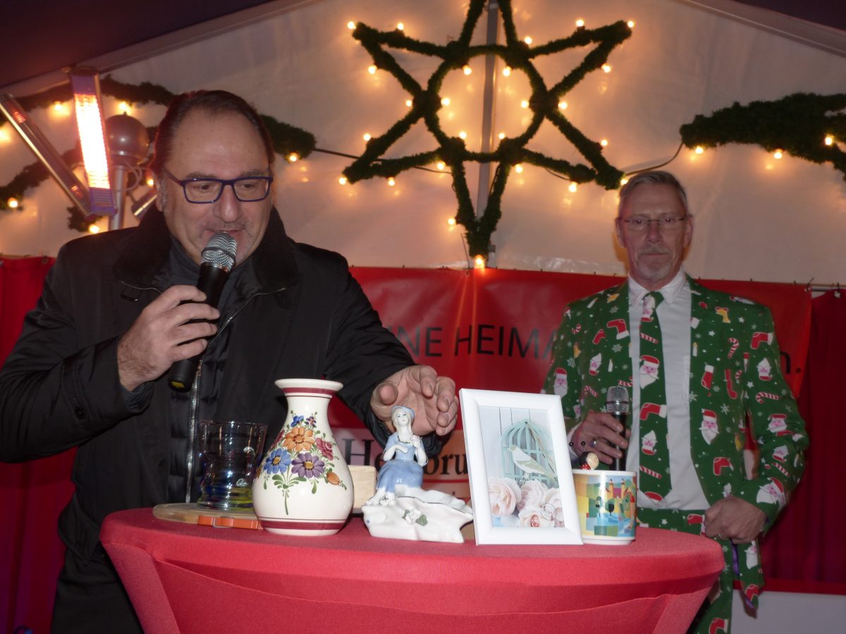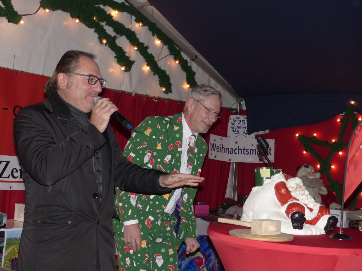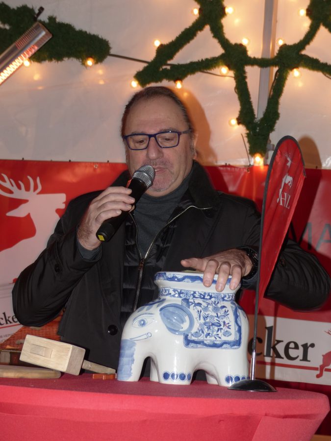 Hersbruck – „Zum ersten, zum zweiten — und zum dritten!“ hieß es nach den Feiertagen auf der Bühne des Weihnachtsmarktes in Kratzers Biergarten. Auf Einladung der Hersbrucker Zeitung konnten „unvorteilhaft Beschenkte“ dort beim „Markt der langen Gsichter“ ihre Gaben schnell wieder loswerden. Auch bei der 6. Auflage war Moderator Götz Reichel mit von der Partie. Für seinen Anzug, einer grünen Geschmacksverirrung mit adventlichen Motiven, erhielt der Stadtrat anerkennende Pfiffe von den Besuchern, die scharenweise zu dem Event pilgerten. Ihm zur Seite stand diesmal ein Präsident: Denn in der Funktion leitet Bernd Händel die berühmte Veitshöchheimer Faschingssitzung. In Hersbruck vertauschte er die Narrenkappe mit einem Auktionshammer. Und hier geht es zum Film.