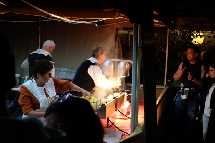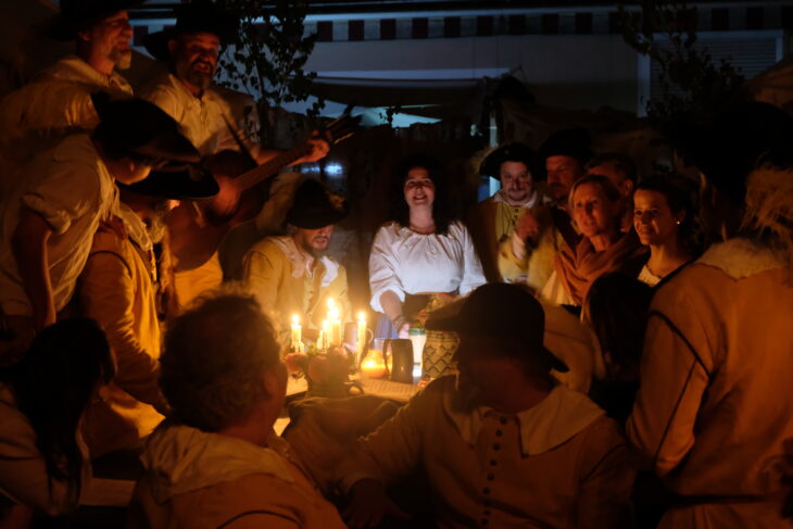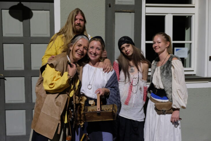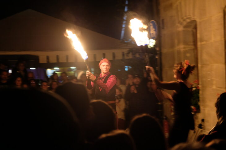 Während am Wochenende Kirchweihen und andere Feste und Feiern mit hellen Lichtern und lauter Musik das Partyvolk anziehen, geht es bei der „Langen Nacht“ der Wallenstein-Festspiele in Altdorf traditionell und düster vonstatten. Das hat die Stimmung der Besucher jedoch keineswegs negativ beeinflusst – ganz im Gegenteil. Massen strömten am Samstag bis in die tiefe Nacht durch die Straßen und Gassen rund um den Marktplatz um die besondere Atmosphäre zu genießen. Denn es ist ein großes Highlight der Wallenstein-Festspiele. Das Klirren von Gläsern und teilweise beängstigend barbarisches Gelächter erfüllten die Dunkelheit. Literweise floss das kühle Wallenstein-Festspielbier in die oftmals unrasierten Kehlen der feiernden Wallensteiner, während sie im Fackelschein die zahlreichen Lager repräsentierten. An jeder Ecke gab es etwas zu entdecken – wie bei einer interaktiven Zeitreise. Am ausgelassensten war die Stimmung natürlich wieder bei den „Schweden“, die lauthals mit Gitarre begleitete Lieder sangen. Währenddessen vergnügten sich die Gäste bei kulinarischen Köstlichkeiten, einer actionreichen Feuershow, Spielen, wie „Rattenwerfen“, einem Fackelzug und bei anderen wilden Darbietungen.