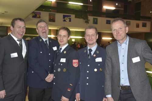 Alex Weichmann, Tobias Holfelder, Martin Maul von der Feuerwehr Bullach, Florian Kiebs von der Feuerwehr Weigenhofen und Friedrich Weber, Geschäftsführer der Brauerei Simon2019/01/Laufer-Neujahrsempfang-2019-02.jpg