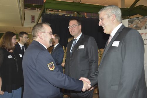 Dritter Bürgermeister Thomas Lang (rechts) begrüßt Kreisbrandinspektor Fritz Holfelder, dazwischen Zweiter Bürgermeister Norbert Maschler2019/01/Laufer-Neujahrsempfang-2019-08.jpg