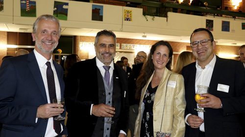 Gerhard Knienieder, Geschäftsführer von Emuge, Laiki Pasalidi, Vorsitzender des SK Lauf, Stefanie Camin, Marketingbeauftragte des Fahner Verlags, und Dieter Gabsteiger von der Firma Psyma und dem Montessori Trägerverein2019/01/Laufer-Neujahrsempfang-2019-25.jpg