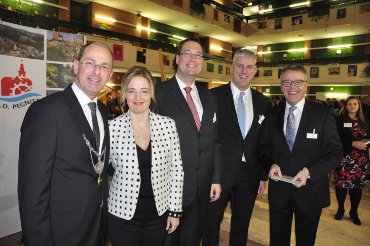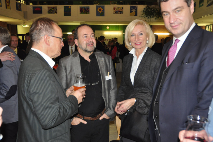 Der Verleger der Pegnitz-Zeitung, Lambert Herrmann, mit NN-Redakteur Georg Escher aus Röthenbach, Nürnbergs Kulturreferentin Julia Lehner und Finanzminister Markus Söder.2016/01/Neujahrsempfang-Lauf-2016-011.jpg