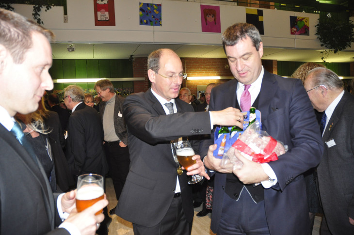 Von Bürgermeister Benedikt Bisping gab es Geschenke für Ehrengast Markus Söder.2016/01/Neujahrsempfang-Lauf-2016-005.jpg