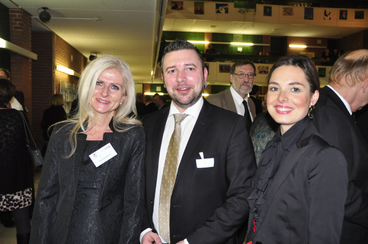 Bürgermeisersekretärin Anja Schwemmer mit Jubiläums-Projektleiter Benjamin Wallner und der tschechischen Loket- und Jubiläums-"Botschafterin" Tereza Prochazkova.2016/01/Neujahrsempfang-Lauf-2016-014.jpg