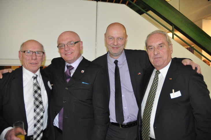 Laufs ehemaliger Polizeichef Erich Schmidt, Lokets Bürgermeister Zdenek Bednar, Petr Zahradnicek, zweiter Bürgermeister von Loket und Bezirkshauptmann von Karlsbad, sowie Altlandrat Helmut Reich.2016/01/Neujahrsempfang-Lauf-2016-026.jpg