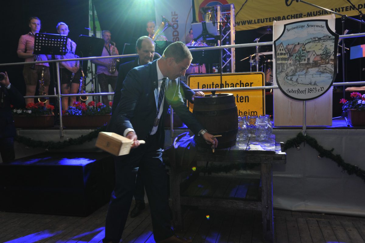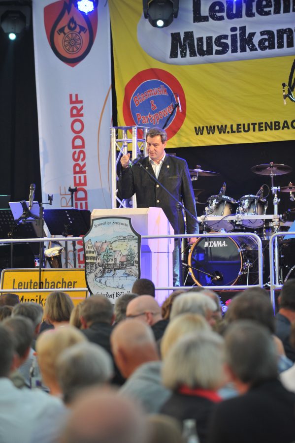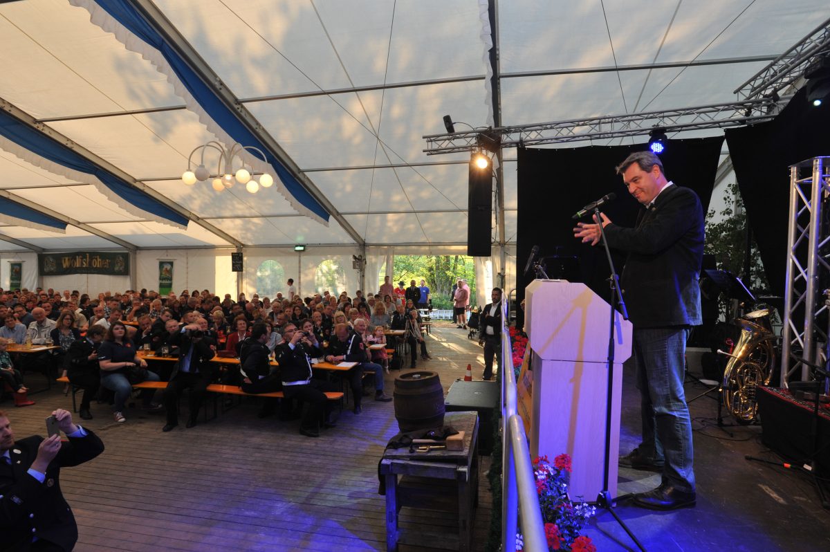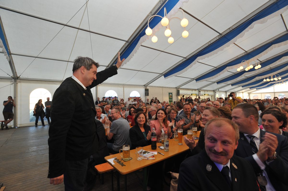 HEDERSDORF — Ministerpräsident Markus Söder war am Freitag zu Gast im Hedersdorfer Feuerwehrzelt. Die Jubelwehr, die ihr 125-jähriges Bestehen feiert, hatte ihn schon vor drei Jahren, damals war er noch Minister, eingeladen. Söder hielt Wort und kam zum Bieranstich.