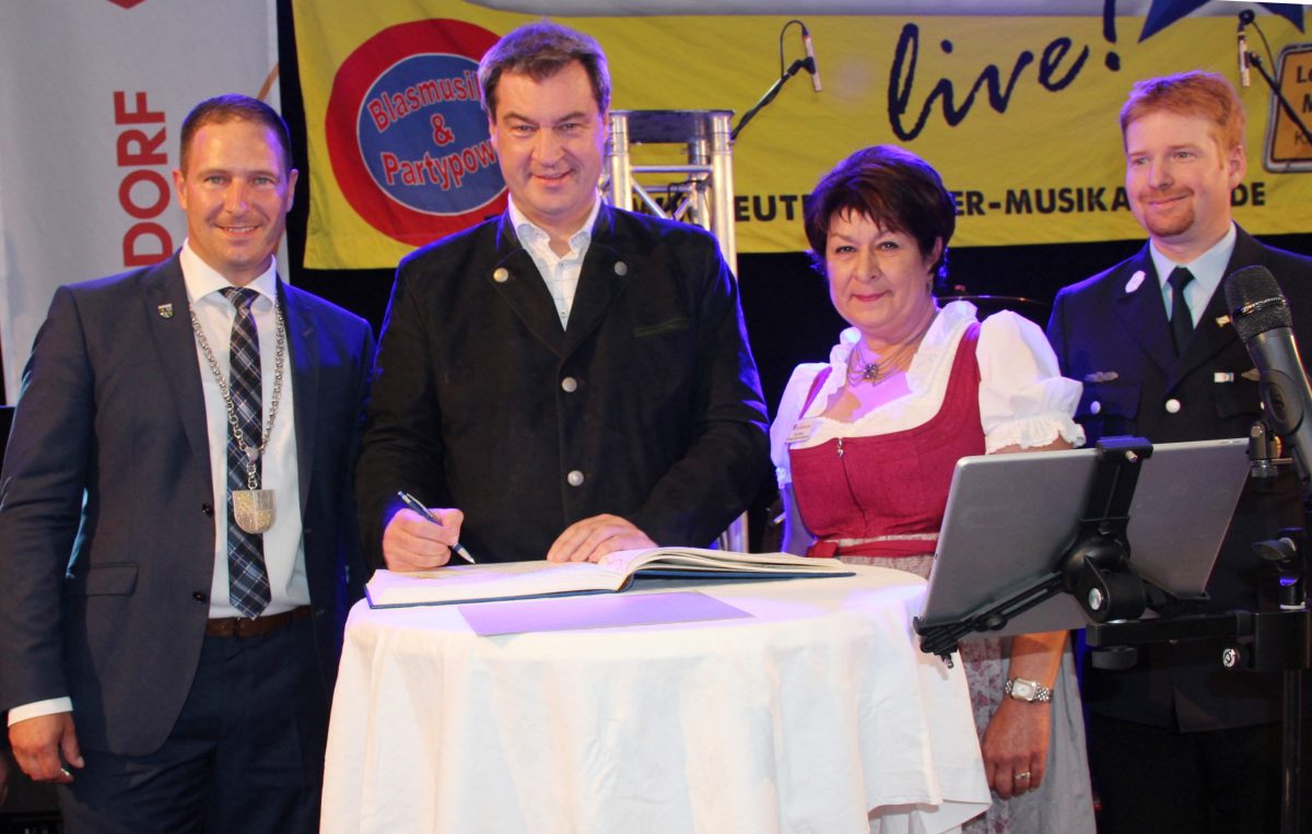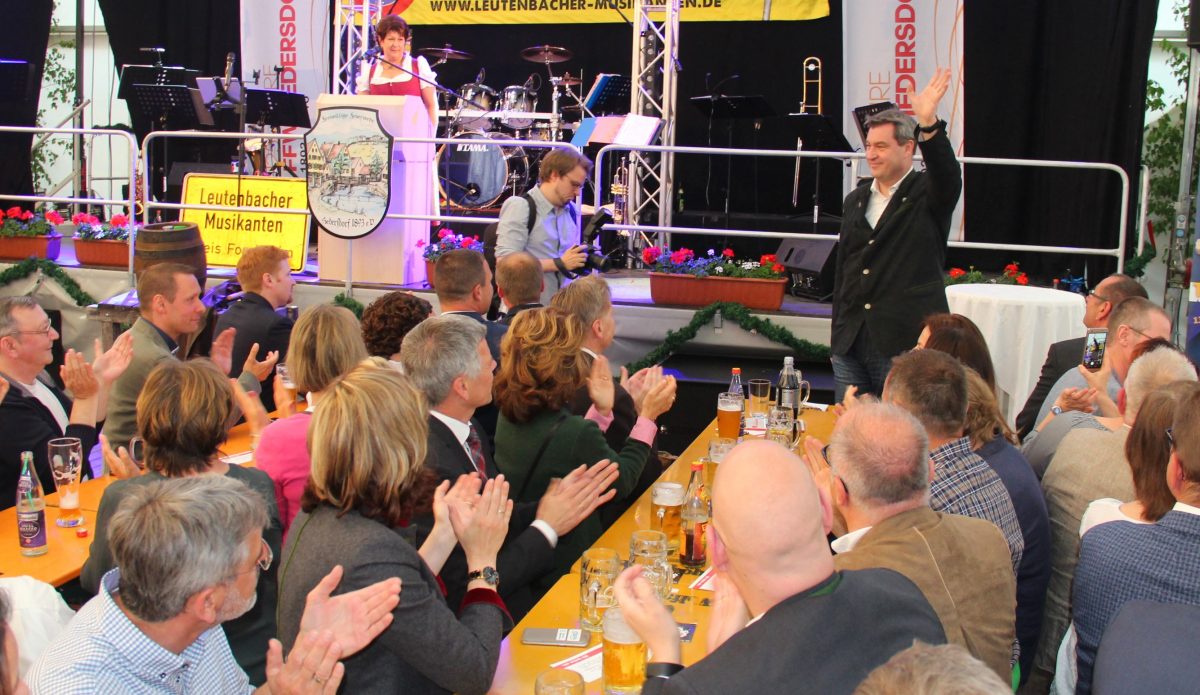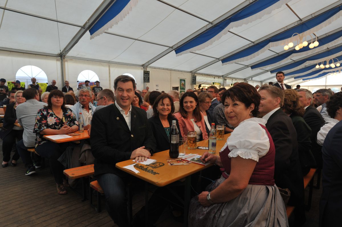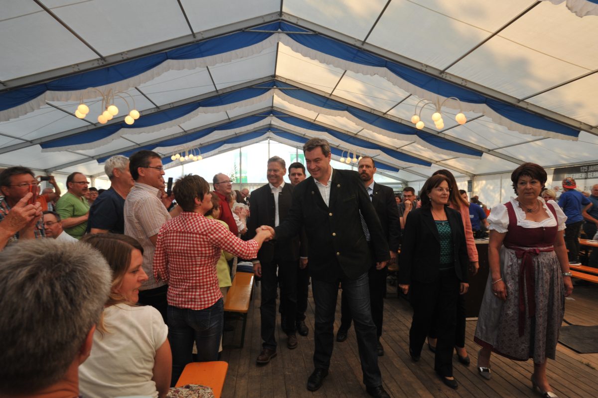 HEDERSDORF — Ministerpräsident Markus Söder war am Freitag zu Gast im Hedersdorfer Feuerwehrzelt. Die Jubelwehr, die ihr 125-jähriges Bestehen feiert, hatte ihn schon vor drei Jahren, damals war er noch Minister, eingeladen. Söder hielt Wort und kam zum Bieranstich.