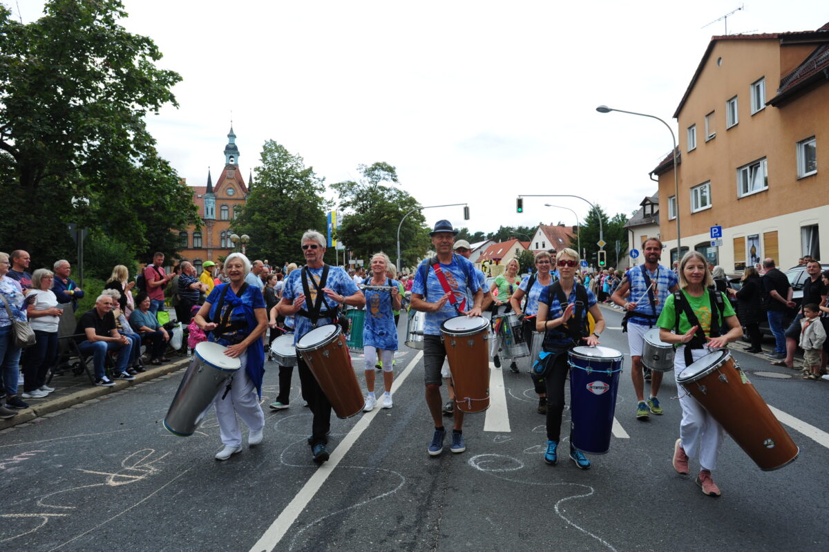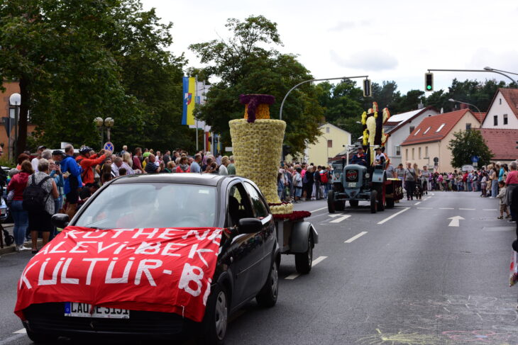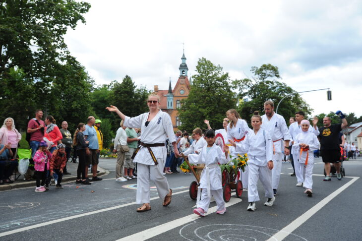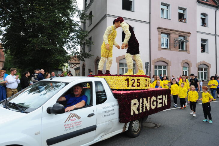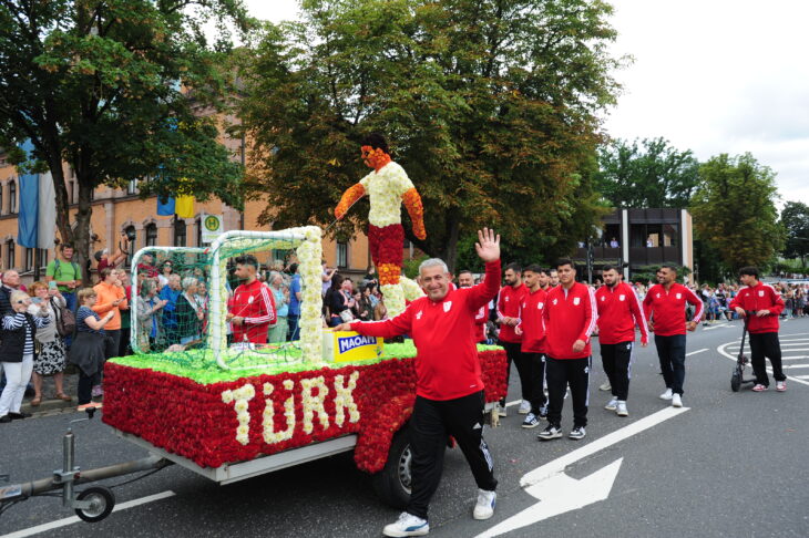 Die Strecke des Festzugs säumten mehr Zuschauer als im Vorjahr. Es dürften über 25.000 gewesen sein. Hier im Bild das Motiv des TSV 1899 (Geburtstagstorte). | Foto: Sichelstiel2024/08/DSC_1666-scaled.jpg