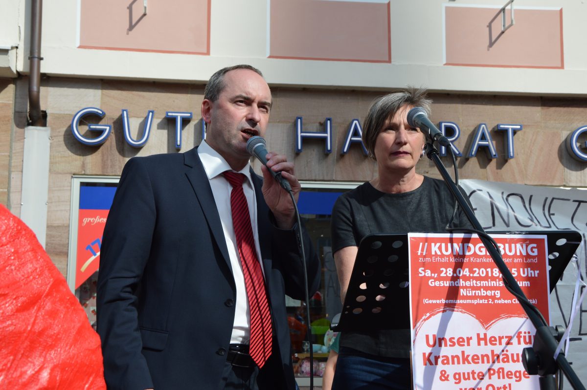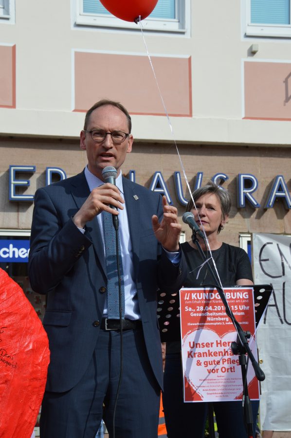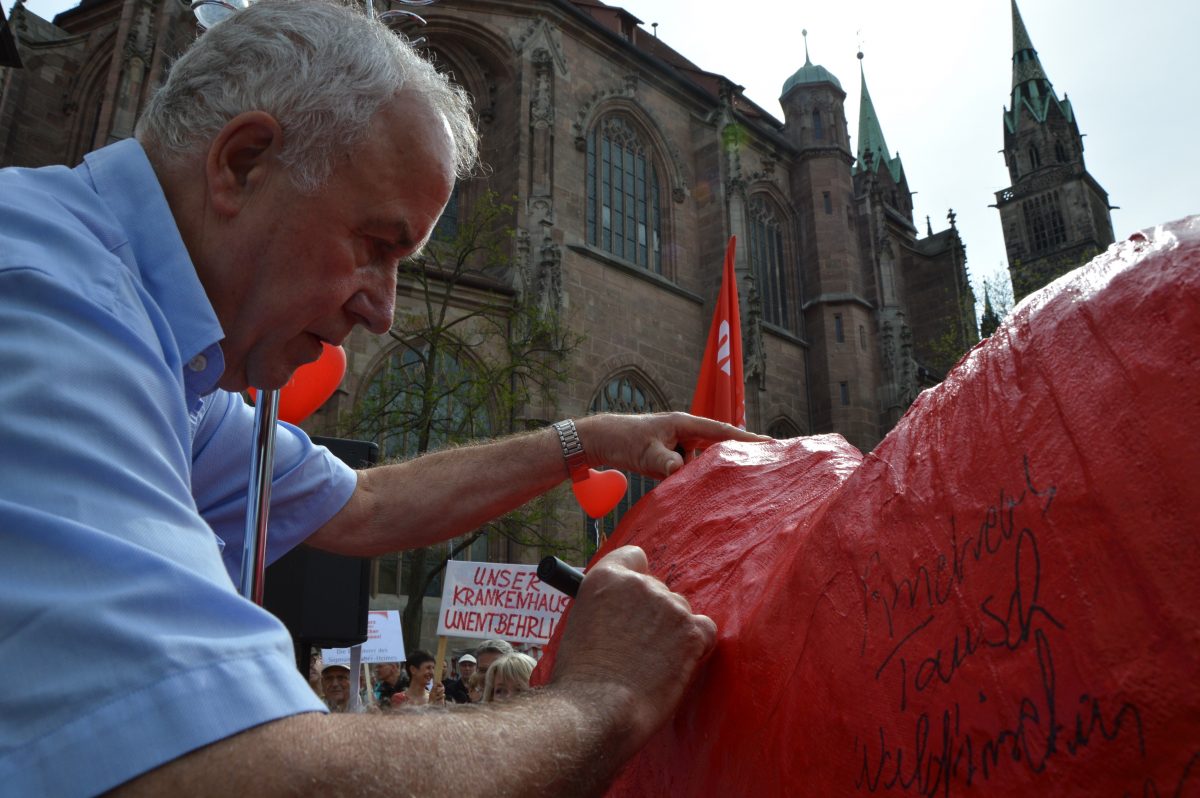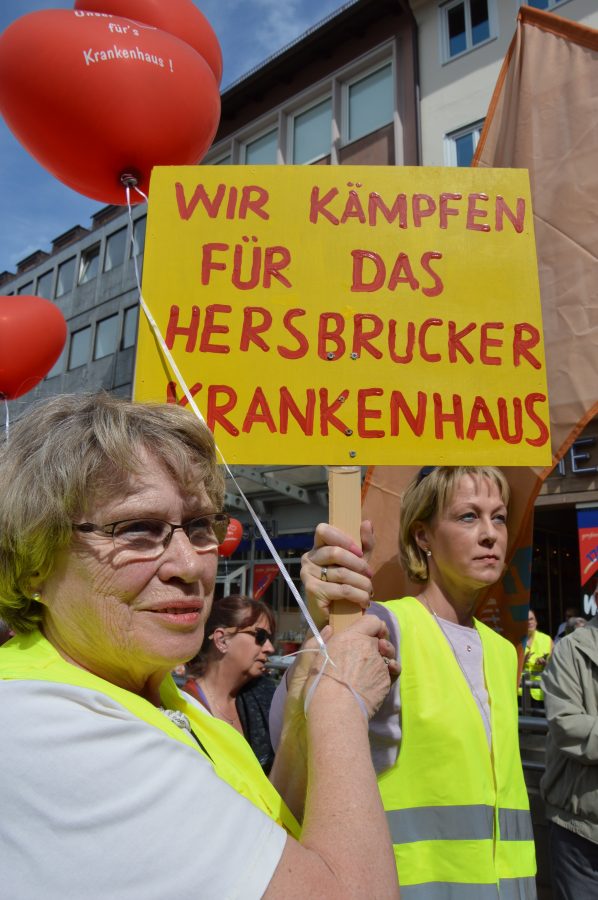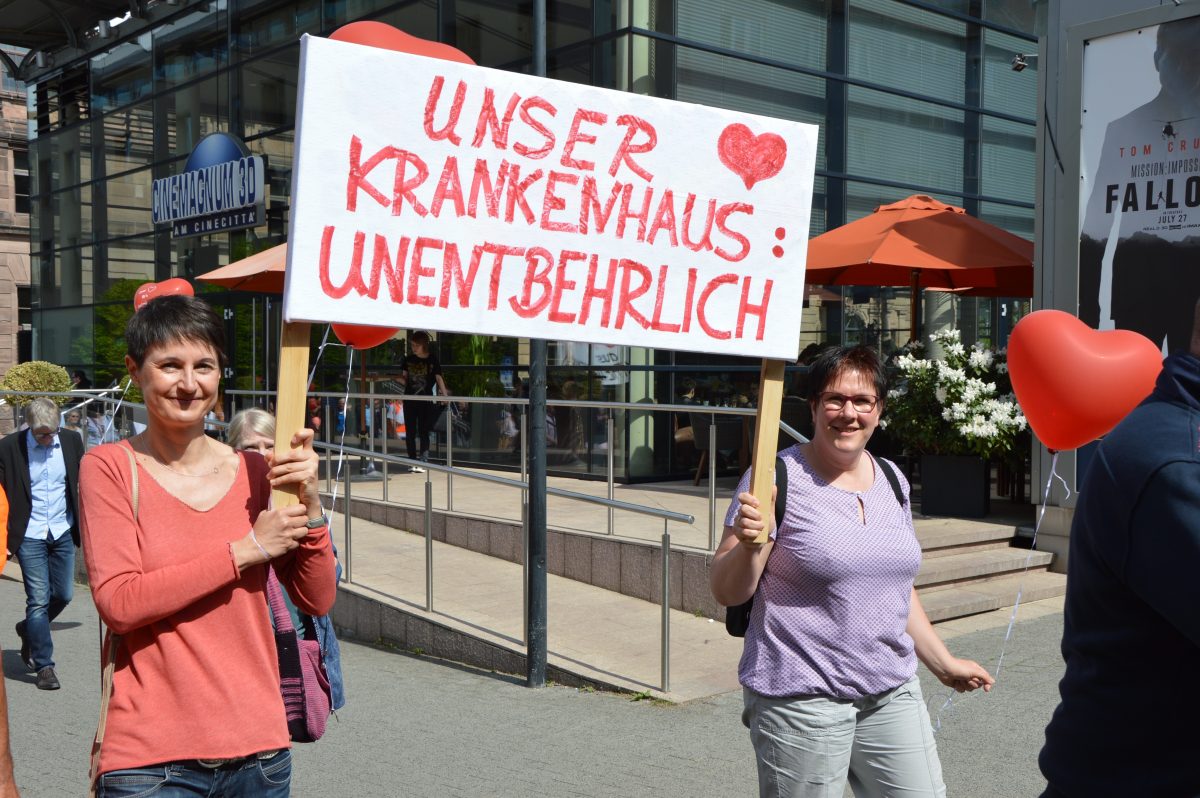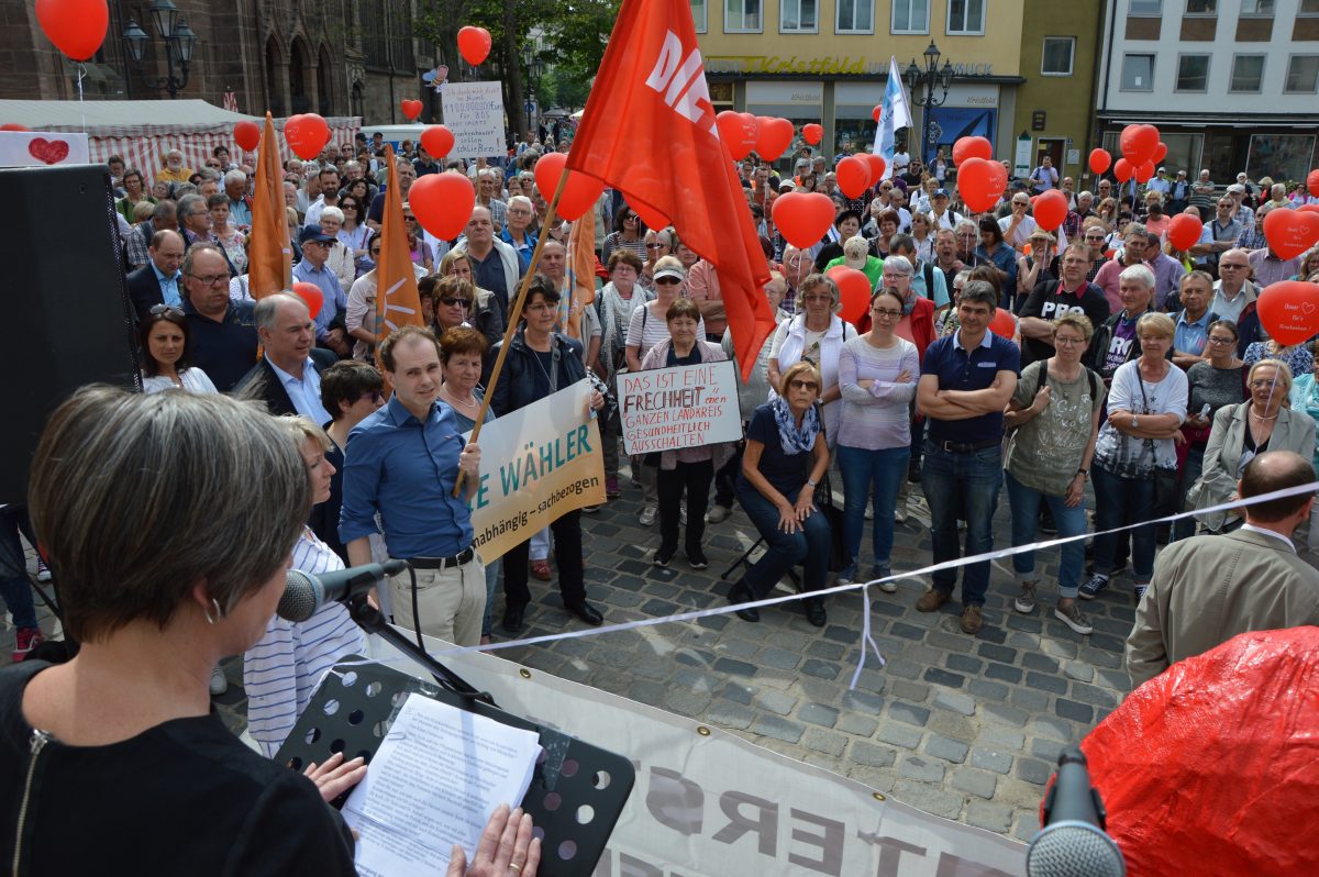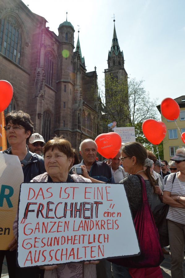 NÜRNBERG/HERSBRUCK – „Wir brauchen unser Krankenhaus“, „Unser Krankenhaus: unentbehrlich“, „Wir kämpfen für unser Hersbrucker Krankenhaus“ – diese und noch viele Kampfparolen mehr trugen Bürger aus der Hersbrucker Schweiz zur Kundgebung am Lorenzer Platz. Hier sind die Bilder, hier der Bericht.