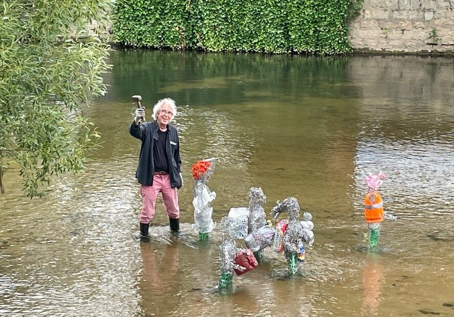 HERSBRUCK – Na sowas! Neugierige Blicke wandern von den Brücken und Wegen entlang der Pegnitz ins Wasser und teils auch in die Lüfte: Die ersten Kunstobjekte für „Kunst im Fluss“ sind bereits in, über oder an der Pegnitz angebracht worden.