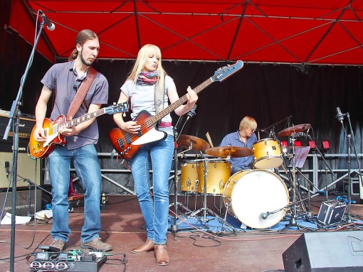 Mit den „Headphones“ standen drei junge Musiker aus dem Nürnberger Land auf der Bühne, die auch im Alltag viel mit Menschen zu tun haben. Schlagzeuger Jochen ist Erzieher, Bassistin Kerstin Sozialpädagogin und Gitarrist Simon arbeitet im Rettungsdienst. Seit November 2011 spielt das Trio ehrlichen, erdigen Rock‘n’Roll – bluesgetränkt und kraftvoll. Ihre fesselnden Eigenkompositionen erinnern an Größen der Szene wie Rory Gallagher. 2012 gewannen sie so den Bandwettbewerb des Kreisjugendrings Nürnberger Land. Zuvor standen sie schon auf der Rockbühne der Nürnberger Nachrichten. Mit „Love try“ ging es gleich zu Beginn zur Sache.