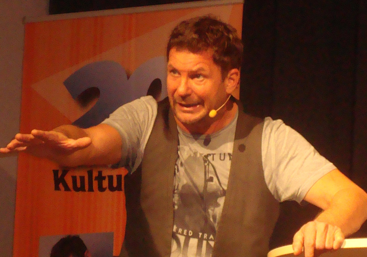 „Sie wollten auch mal in so viel Geld sitzen?“, fragt er ins Publikum – ein Seitenhieb auf die holprige Baugeschichte des Objekts. Und weiter: „Wollte die Architektin nicht auch Schwertransporter auf dem Dach parken lassen?“