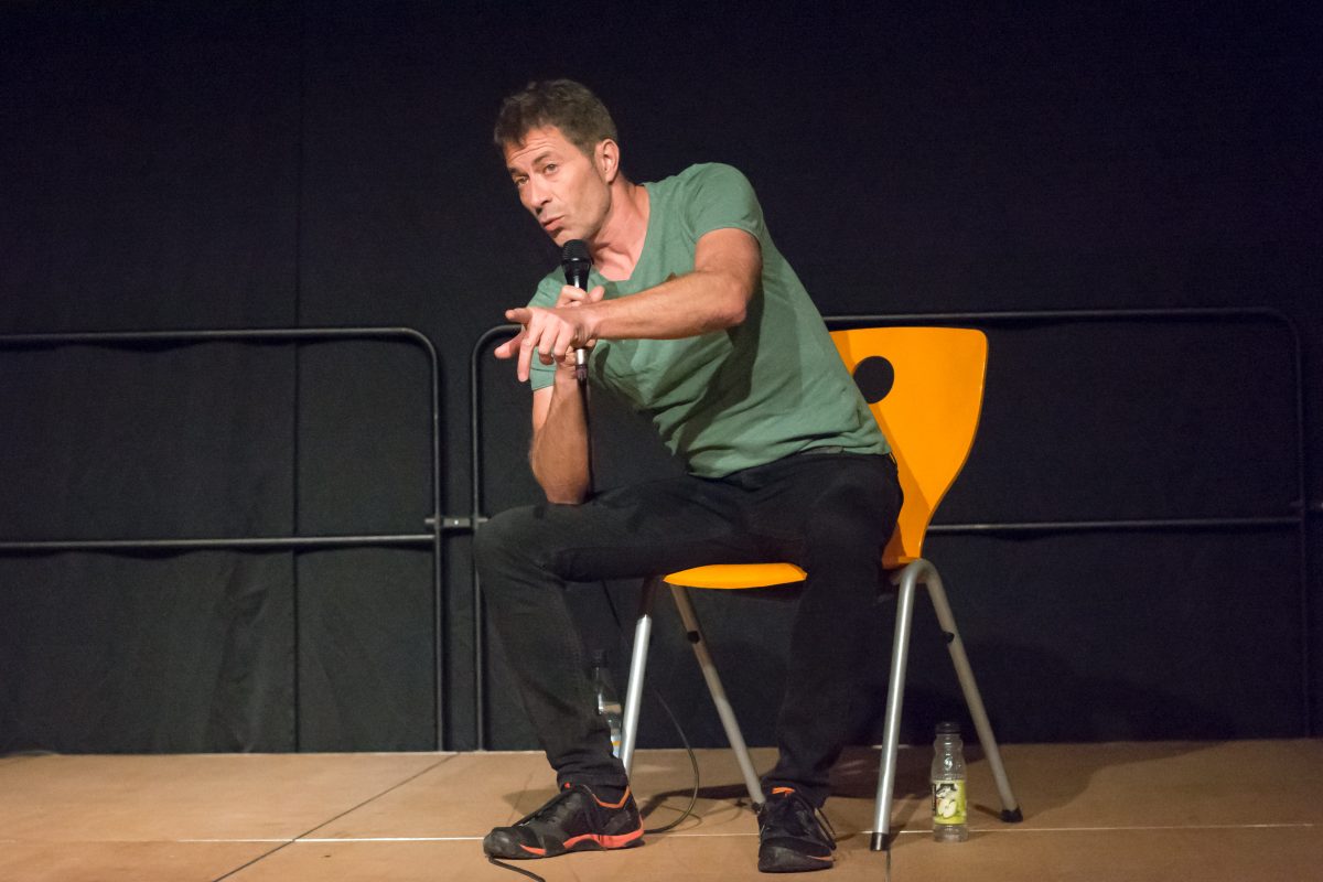 Eine Flasche Wasser und einen Stuhl – mehr braucht Rolf Miller bei seinem Bühnenprogramm nicht. Mehr ist aber auch nicht nötig. | Foto: S. Baderschneider2019/04/RolfMiller-7293.jpeg