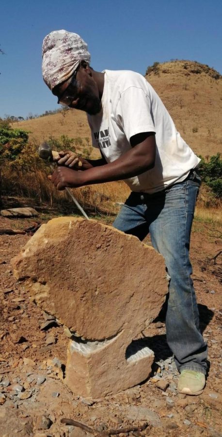 Benjamin Musendami bei der Arbeit an einer Steinskulptur. | Foto: privat2023/06/Musendami-2.jpeg