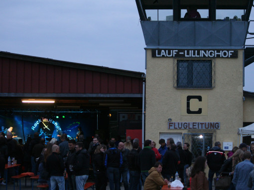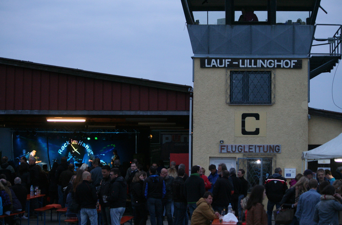 Für die letzte Band des Abends standen die Sterne am nächtlichen Fliegerhimmel nicht ganz so günstig. Durch eine lange Umbaupause bei den kühlen Temperaturen wanderten schon viele Besucher ab, bevor die ersten Töne der Nürnberger Coverrockband „Punch“ durch die Halle dröhnten. Zunächst tanzten sich die verbliebenen Besucher vor der Bühne warm.