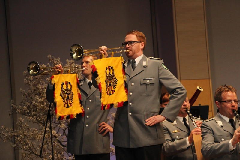 Durch die anschaulichen, klaren und sympathischen Ansagen des Dirigenten wurden die Musikstücke noch lebendiger. Unterstützt von Stabsfeldwebel Bettina Peschanel, die eindrucksvoll das Gedicht „Der Zauberlehrling“ von Johann Wolfgang von Goethe vortrug, erweckten die Musiker bei dem gleichnamigen Stück von Paul Dukas die Figuren in der Phantasie des Publikums zum Leben: Sich langsam intensivierende Melodien, bei dem die Schlägel der Schlagzeuger in atemberaubendem Tempo über das Glockenspiel flogen, schließlich zum Schweigen kamen. Die lauten wie die leisen Töne, die tiefen wie die hohen – allesamt waren sie perfekt intoniert.