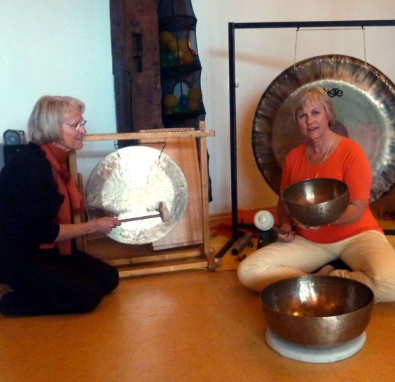 HERSBRUCK – „Ein Konzert des Herzens“ mit tibetischen Klangschalen, unterschiedlich gestimmten Gongs , den Saiteninstrumenten Tambura, Monochord, Klangspielen und menschlicher Stimme veranstalteten Irmingard Philipow (links) und Jadranka Marijan-Berendt aus Berlin in „Peters Scheune“ in Hersbruck. Schon nach den ersten Tönen trat konzentrierte Stille in den Gemäuern ein. Die zahlreichen Gäste lauschten staunend den Klängen und obertonreichen Stimmen, die ein einziger gekonnt angeschlagener Gong hervorbrachte. Von einfachen Grundtönen ausgehend schwangen sich einzelne Klänge zu ihren vielfachen Obertönen hinauf, überlagerten sich, traten miteinander und mit dem Raum in Resonanz und trugen die Zuhörer in ungewohnte Klangwelten. Zusätzliche Impulse setzte Berendt mit kurzen poetischen Texten zum Thema Frieden. Schließlich wurden alle in den Gesang mit einbezogen, sodass das Konzert tatsächlich zu einem ganzheitlichen gemeinsamen Erlebnis wurde. Mit Leidenschaft beantwortete die Witwe des Musikjournalisten Joachim-Ernst Berendt (Klang der Welt) viele Fragen zu ihren Instrumenten und deren Wirkung auf Körper und Seele. Foto: E. Rauner
