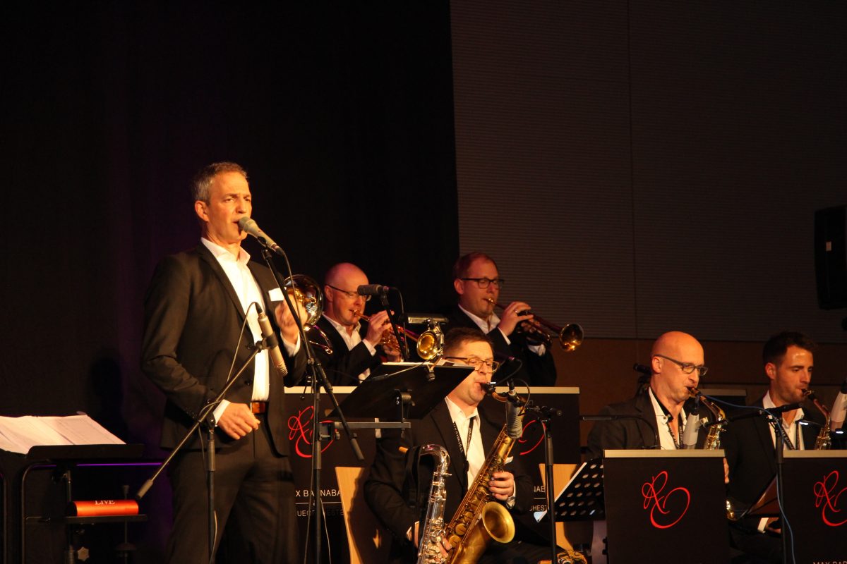 Barnabas ist ein geborener Entertainer, der mit seiner sonoren Bassstimme klar im Mittelpunkt steht. Er hatte jedoch keine Mühe, in dem harmonierenden Orchester nach hinten zu treten, um Gerhard Wagner aus Altensittenbach bei dem Max-Greger-Stück „Night Train“ Raum für ein grandioses Tenorsax-Solo zu geben. Überhaupt übertrafen sich die solistischen Darbietungen gegenseitig.