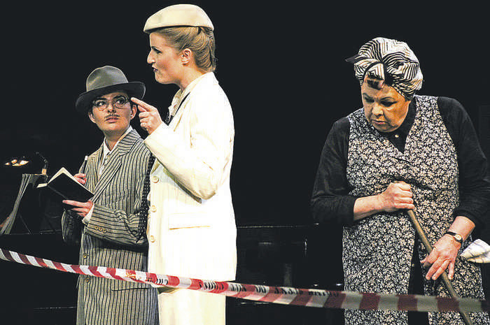 Man nehme: eine Prise schwarzen Humor, eine Handvoll alter Agatha-Christie-Romane, zwei Packungen der schönsten Arien der letzten drei Jahrhunderte, garniere dieses mit einem stimmungsvollen Bühnenbild á la Film Noir und lasse das Ganze von vier talentierten Damen kräftig umrühren. Fertig ist das Krimisüppchen, das nach liebgewonnenen Klischees duftet und garantiert nicht auf den Magen schlägt. So oder so ähnlich lässt sich die neueste DHT-Produktion beschreiben. Ein Krimispaß, mit allem, was das Herz begehrt.