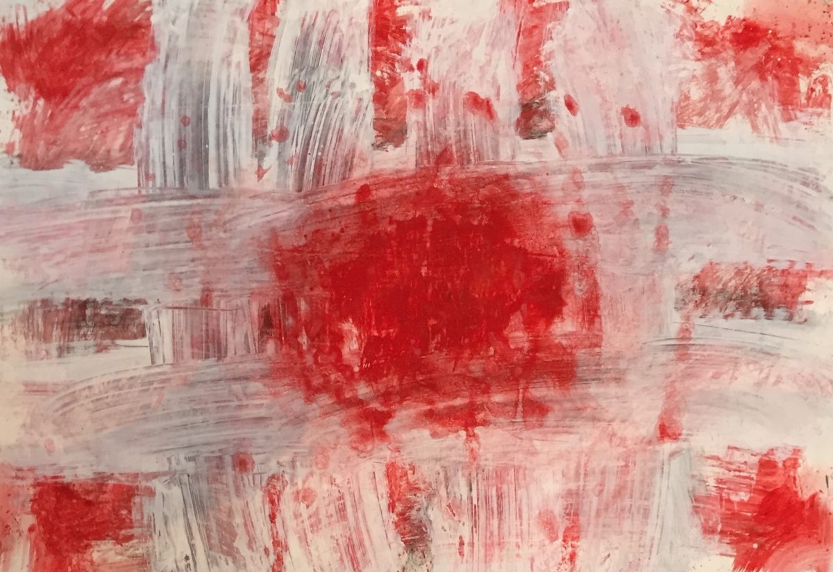Sich den Eindrücken dieser Bilder zu entziehen, ist unmöglich. Dicht an dicht gehängt in den zwei kleinen Ausstellungsräumen des Kunstmuseums am Spitaltor, sind die großformatigen Arbeiten auf Papier von drei Farben bestimmt: Schwarz, Weiß und ein leuchtendes Rot. Es steht für den Lebenssaft, das Blut. In den als archaische Torsi angelegten Körpern pulsiert es kraftvoll oder sickert unbarmherzig durch grob genähte Wunden.