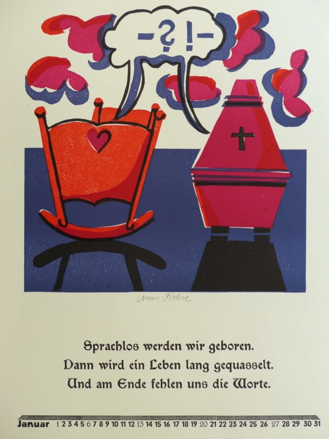 Wenn sich alljährlich begnadete fränkische Zeichner zusammensetzen, um mit den letzten Könnern der Bleidruck-Kunst, wie Günther Tobisch und Siegfried Zimmermann, einen Kalender handzufertigen: Geht es dann darum, die Welt, speziell deren Abteilung Franken, philosophisch zu durchdringen? Das alte Druckerhandwerk zu wahren?