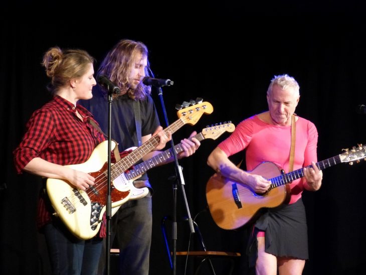 Die Akteure beginnen eindrucksvoll mit einer akustischen Verfolgungsjagd, Schüssen und Martinshorn-Klängen im dunklen Kulturraum. Ein Gangsterpärchen, offensichtlich auf der Flucht, rettet sich auf die Bühne respektive den Proberaum einer Band.