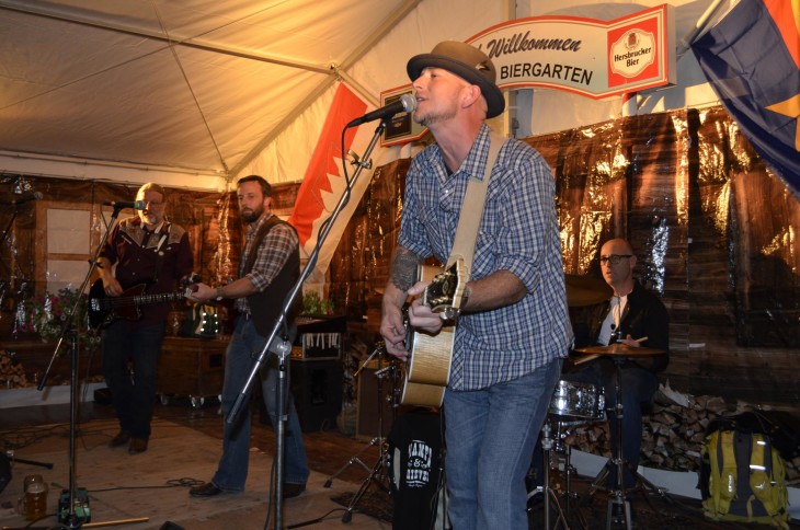 HERSBRUCK – Mit minimalistischem Equipment und purer Spiellaune wartete die US-Band Tramps & Thieves beim Kratzer im Festzelt auf. Die Formation um Sänger und Songwriter Emmet DeGuvera mit J. Scott Howard (Gitarre, Gesang), Andy Jensen (Bass, Gesang) und Scott B. Seymann (Schlagzeug) brachten bei ihrer ersten Auslandstournee richtig Stimmung ins Zelt. Mit ihrem Stil vermischen sie Country, Hillbilly und Pop, haben ihre aktuelle CD mit dem Titel „Galloping hearts“ dabei und sorgen für tanzbaren Festzeltrock bis weit in die Nacht.