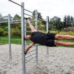 Mit Calisthenics hat Kagerbauer Ende 2017 eher durch Zufall begonnen. Nach einem Versuch, ob er oder ein Kollege einen Handstand länger halten können, war sein Interesse geweckt. Vorher gehörten schon Fußball, Squash, Bouldern oder Mountainbiken zu seinen Hobbies, mit Fitnessstudios hatte er hingegen nie etwas am Hut. „Das ist so ein Sehen und Gesehen werden“, findet er, zudem würden an vielen Geräten Muskeln isoliert trainiert. Bei den Eigengewichtsübungen „trainierst du die komplette Muskulatur“, wirbt er: Schultern, Arme, Rücken, Rumpf. Hinzu kommt, dass die Nutzung der Anlage nichts kostet und man an der frischen Luft ist.
