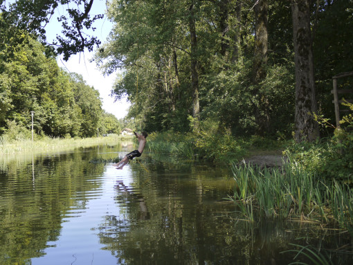 In Pfeifferhütte, am Ortsausgang in Richtung Steinbach, gibt es einen Geheimtipp: Am Ludwig-Donau-Main-Kanal baumelt dort ein Seil von einem Ast, am Ufer ist an den Stamm des Baumes ein Sprungturm aus alten Brettern gezimmert. Tim Nemesch (11) ist gerade mit dem Fahrrad aus Oberferrieden gekommen. Der Platz sei unter Kennern sehr beliebt. Wegen der Gaudi mit dem Seil kommt Tim her. Wem der Tarzansprung zu waghalsig ist, kann von einer Brücke oder Schleusenmauer springen. Die Stelle wird schon lange zum Schwimmen genutzt, Tim kennt sie von seinem Vater. Mittlerweile gibt es eine Whatsapp-Gruppe, in der sich die Kids verabreden.
