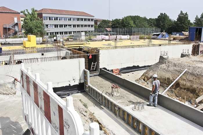 Bei den Arbeiten am Hallenbad in Altdorf liegt man derzeit gut im Zeitplan, 2014 soll das Bad mit Beginn des neuen Schuljahrs im September öffnen. Foto: Blinten