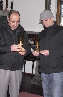 Auch was sich hinter den dicken Mauern der Sakristei verbirgt, fand großes Interesse: Historische Stiche mit Porträts von Theologieprofessoren, die zu Universitätszeiten stets erste Pfarrer in Laurentius waren, ein alter Altar mit hebräischen Schriftzeichen, Kerzenleuchter und eine moderne Tonanlage. Die Sakristei ist Garderobe, Vorbereitungsraum, Regie und eine kleine Schatzkammer. Die uralten wertvollen Abendmahlskelche werden gut gepflegt. Und die Besucher freuten sich besonders, dass sie am Fuß eines Kelches im Schmuckrand einen kleinen Halbmond entdeckten. Fast war die Zeit zu kurz, um alle Fragen rund um das Thema Abendmahl zu beantworten. Wie oft die Gemeinde das feiert, wie die Unterschiede zu den katholischen Gemeinden sind und wer alles kommen darf.
