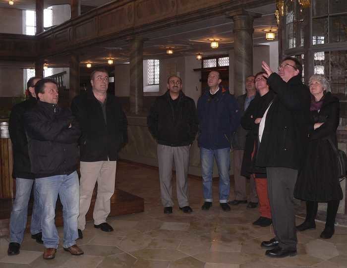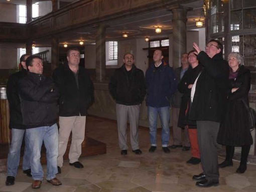 Die Sekretäre der Moschee fungierten als Übersetzer, aber auch der Dekan hatte sich vorbereitet und zeigte bei der Vorstellung von Kantorin Almut Beyschlag und Mesnerin Monika Frank die türkischen Begriffe für die Berufe der beiden Damen auf großen Zetteln. Pfarrerin Veronika Zieske hatte Tee für die Gäste bereitgestellt. Den Kirchenvorstand vertraten Bärbel Reuter und Andreas Münch.