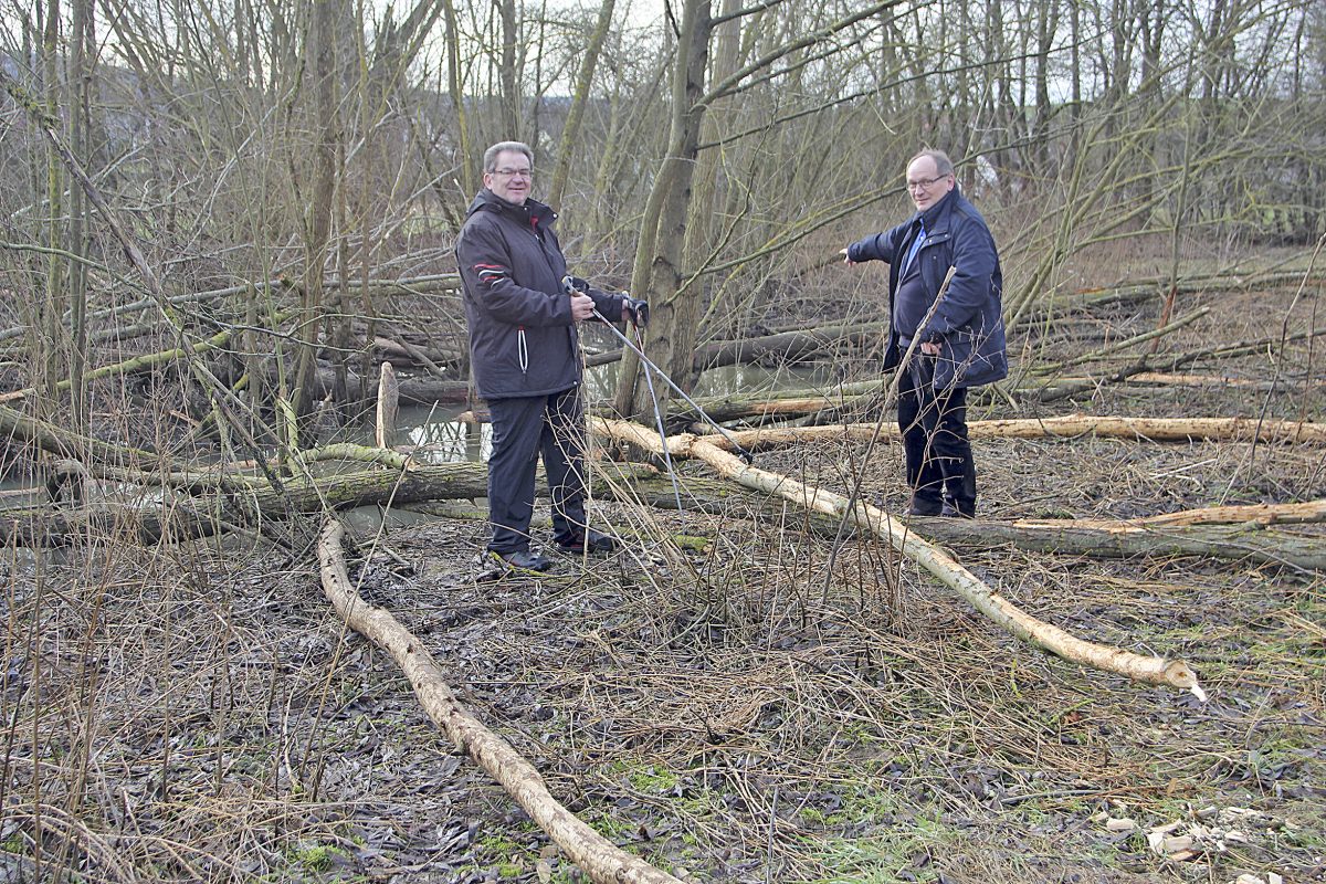 RASCH – Fritz Merkel und Erwin Költsch machen sich Sorgen. An der Schwarzach oberhalb von Rasch haben Biber dutzende von Weiden umgelegt, die in die Wiesen und direkt in den Fluss gefallen sind. Was passiert beim nächsten Hochwasser? fragen sich die beiden Rascher.