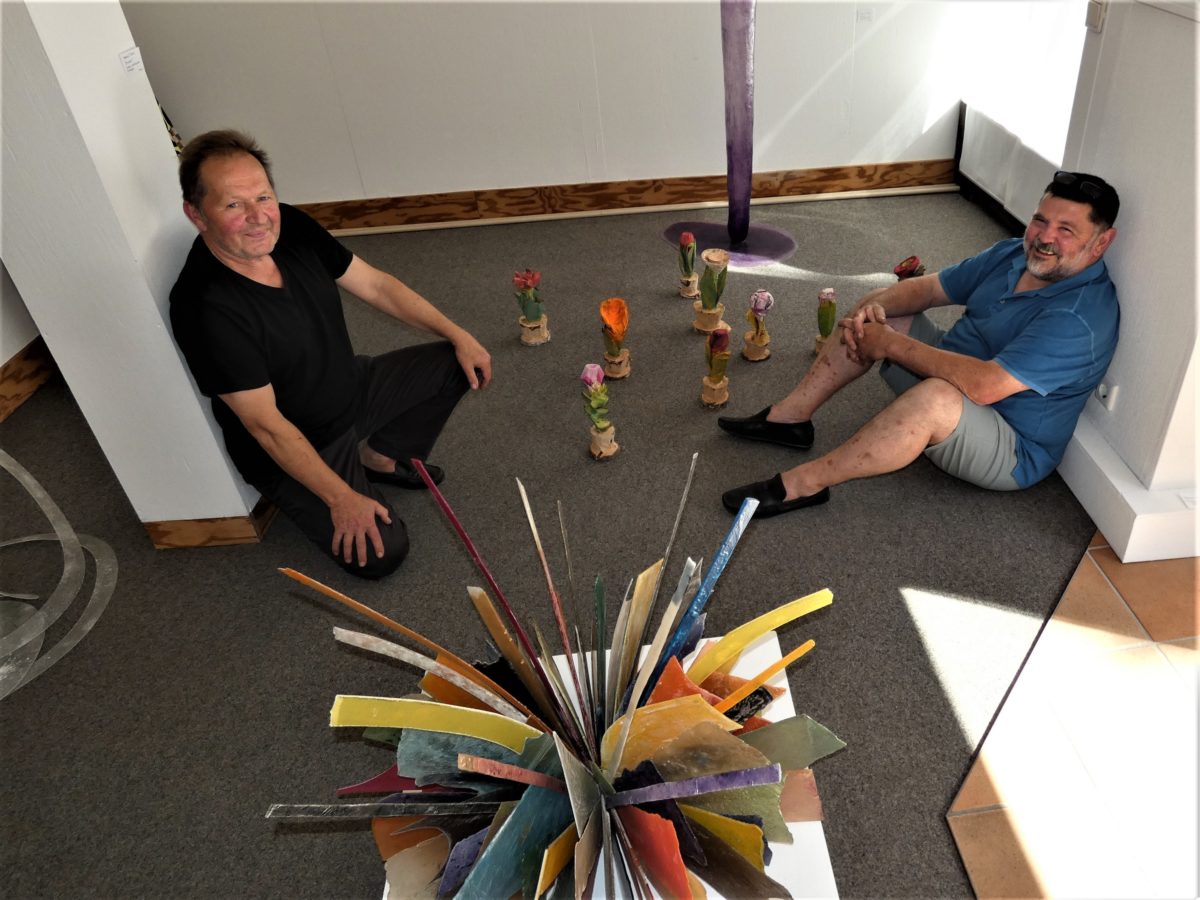 Am Ende des Interviews in der Galerie kunststern öffnet sich die Tür und Harald Pompl betritt den Raum. Er habe eigentlich nur eine seiner dort ausgestellen Arbeiten austauschen wollen, erzählt der Bildhauer. Und bleibt. Zwei Meisterschüler von Prof. Uhlig begegnen sich wieder. Sie haben sich viel zu sagen.