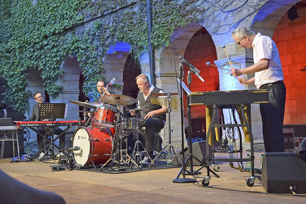 „Was könnte passender sein, als zum Ende der Wallenstein-Festspiele einen Weltstar zu engagieren, der im Kern Rummelsberger, im Herzen Altdorfer und sogar ein kleines bisschen Wallensteiner ist?“, fragt Gastgeber Ernst Bergmann, nun vom waldartigen Bartwuchs befreit. Jazz-Star Wolfgang Haffner, der dieses Jahr im Schwedengewand mit Landsknechttrommel am Festzug teilgenommen hat, freut sich sichtlich, in Altdorf zu spielen.