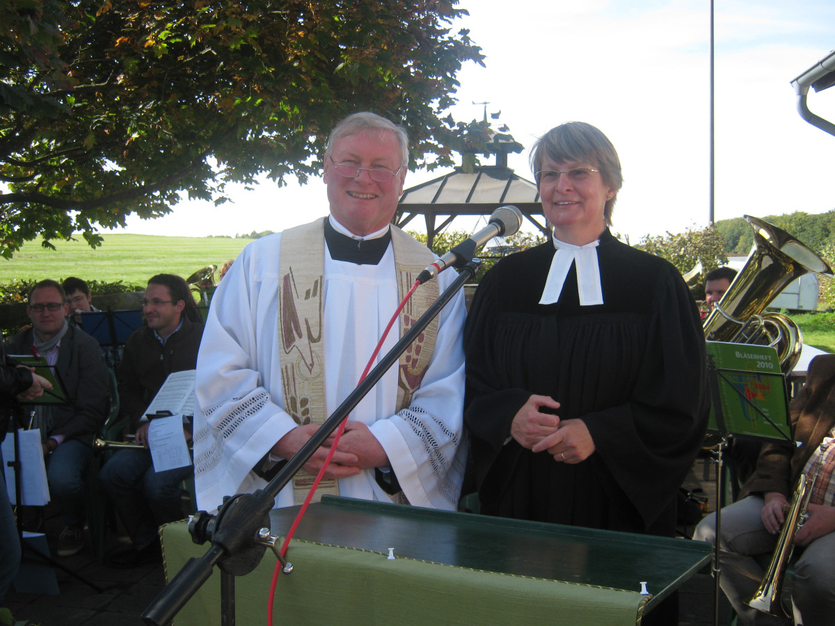 Die Eismannsberger Pfarrerin Barbara Overmann und Pfarrer Albert Börschlein aus Altdorf hatten wohl einen „guten Draht nach oben“ wie es so schön heißt, denn dank des spätsommerlich warmen Wetters fand der Gottesdienst planmäßig im Freien statt. Dass sich Frau Overmann sehr viel mit dem Fliegen auseinandergesetzt hatte, merkte man an der außergewöhnlichen Predigt, deren Inhalt vor allem aus der Schöpfung und dem vogelfreien, lautlosen Fliegen bestand.