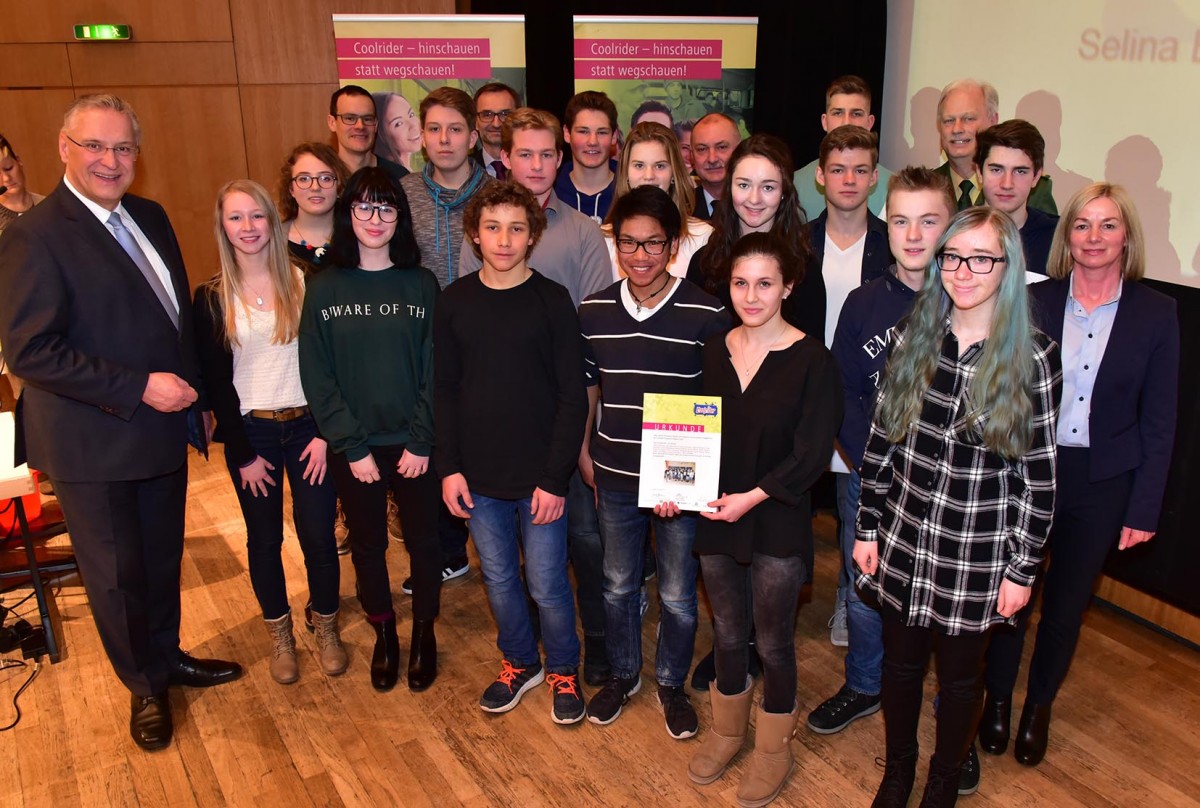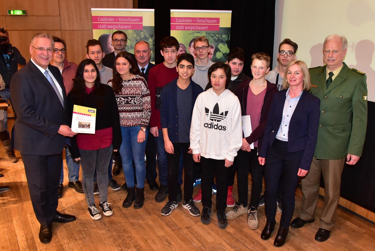 Das Erfolgsprojekt wurde 2002 von der VAG-Aktiengesellschaft Nürnberg gemeinsam mit der Polizei und Nürnberger Schulen ins Leben gerufen. Seit 2012 sorgen Coolrider in ganz Bayern für mehr Zivilcourage in öffentlichen Verkehrsmitteln. Auch der Vorstandsvorsitzende der VAG Josef Hasler beglückwünschte die Jugendlichen und dankte ihnen für ihr Engagement.