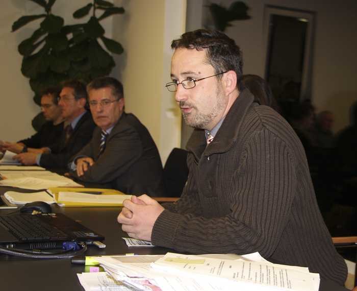 Dr. Alexander Blöchl (rechts) bei seinem Vortrag im Stadtrat, links Bürgermeister Erich Odörfer und Vertreter der Verwaltungsspitze. Foto: Spandler