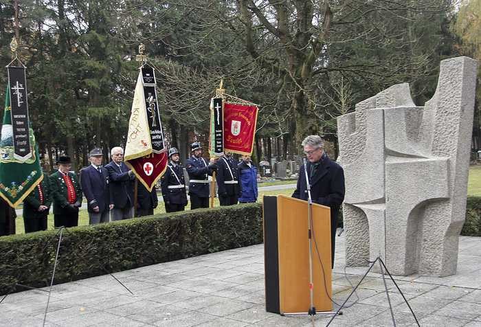 Bürgermeister Erich Odörfer ging in seiner Gedenkrede auf die Opfer von Kriegen, Bürgerkriegen und auf die politischen Verfolgungen ein. Sein Appell: „Wie müssen die Kraft und den Mut gewinnen für ein klares Nein gegen alle Tendenzen, Krieg und Terror zu unterstützen“.