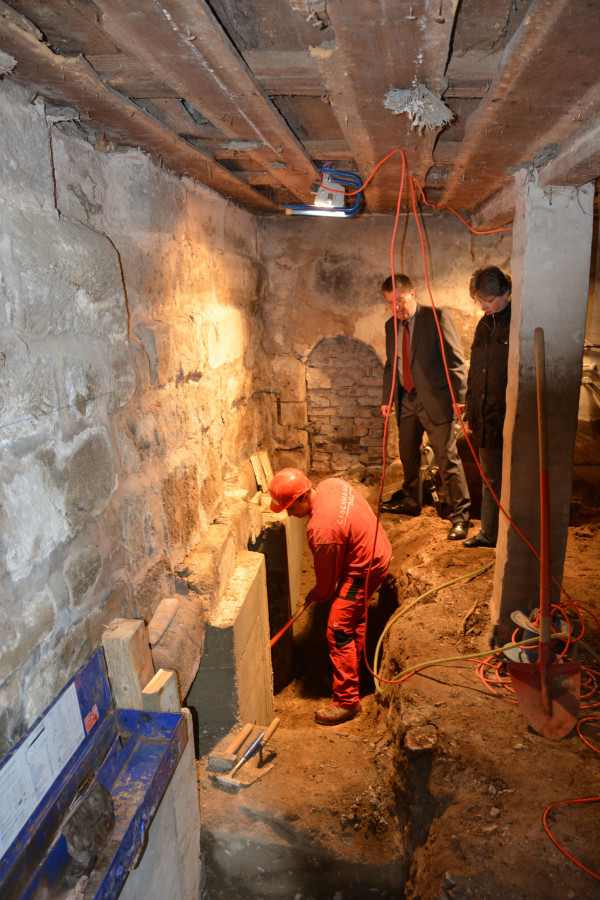 Hier kann man Arbeiten erst in Angriff nehmen, wenn die Mauern im Untergeschoß unterfangen sind.